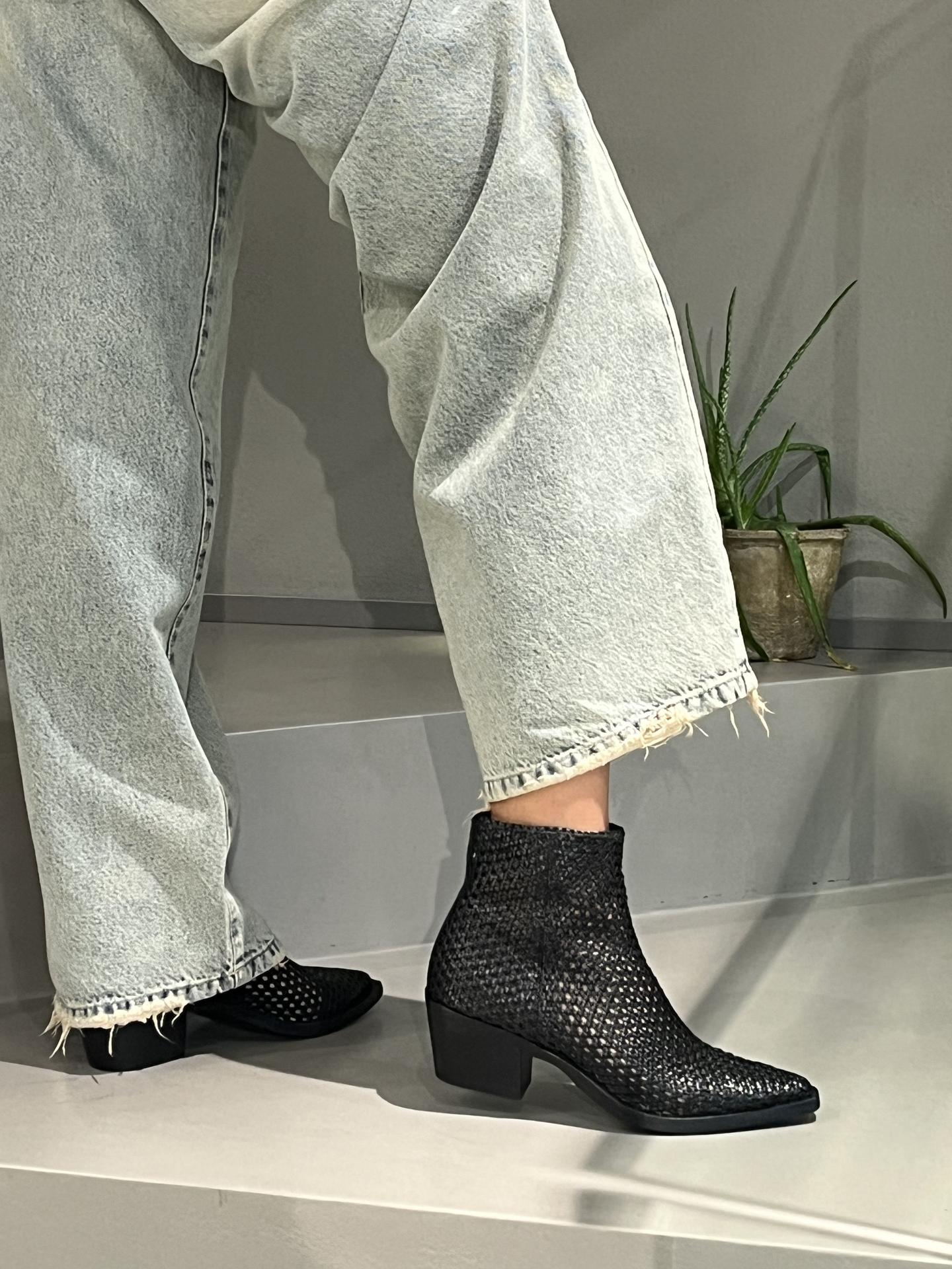 STIVALETTO INTRECCIATO IN PELLE CON ZIP SU LATO INTERNO. TACCO 55, FONDO VERO CUOIO.