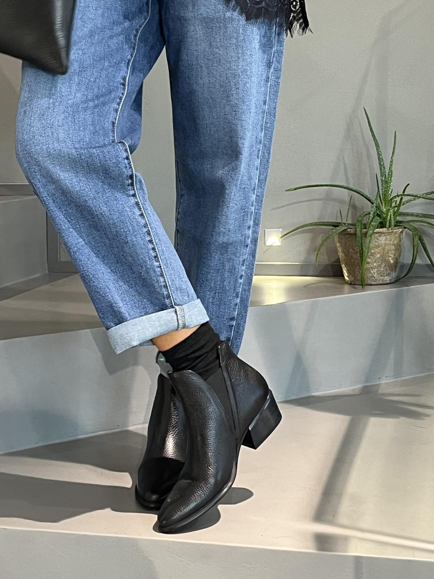 STIVALETTO IN PELLE CON INSERTI ELASTICI SU AMBO I LATI. TACCO 45, FONDO GOMMA. MADE IN SPAIN