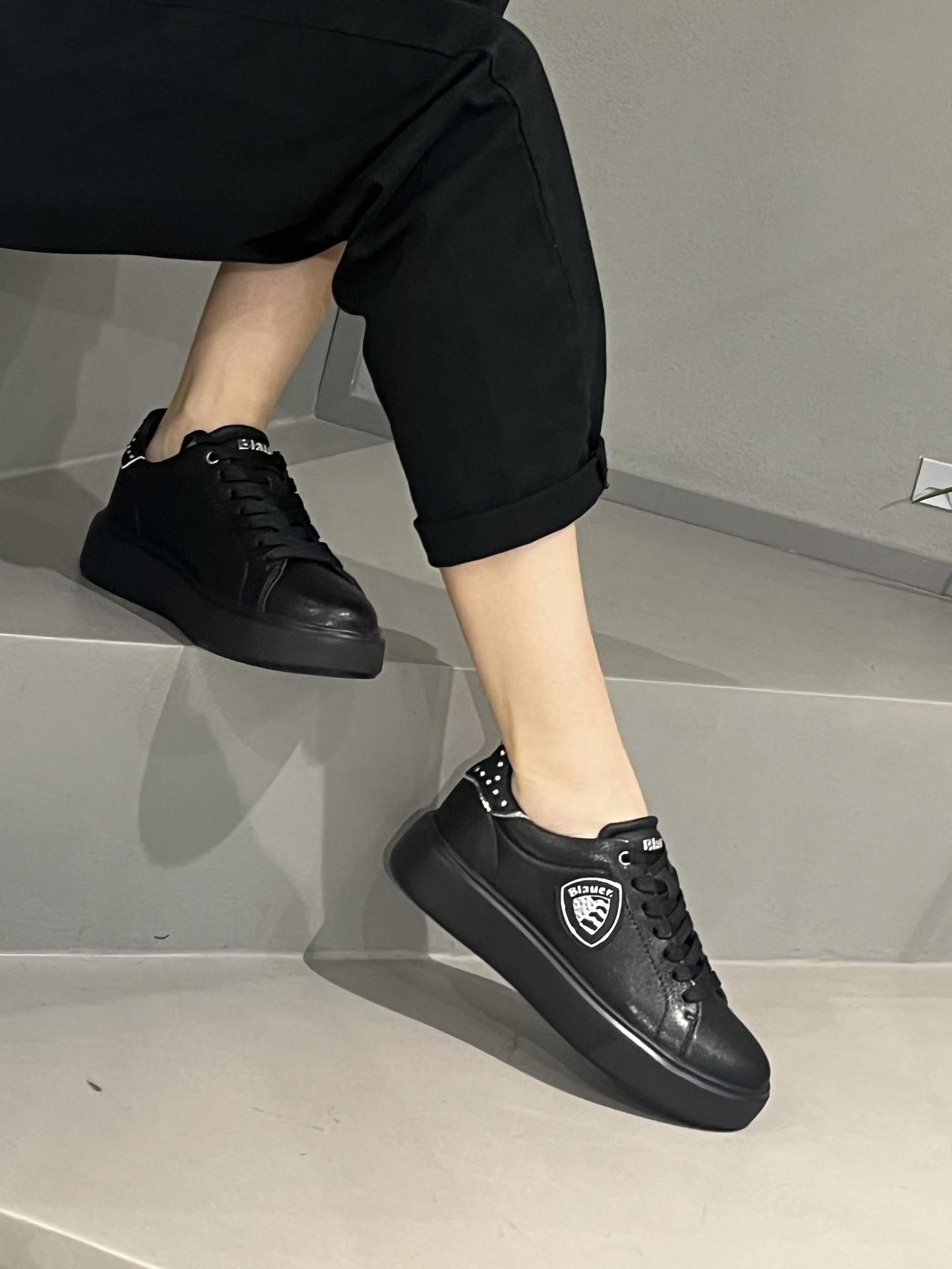SNEAKER STRINGATA IN PELLE CON RIFINITURA DESIGN SUL RETRO. PLANTARE INTERNO ESTRAIBILE. TACCO 35, FONDO GOMMA LIGHT.
