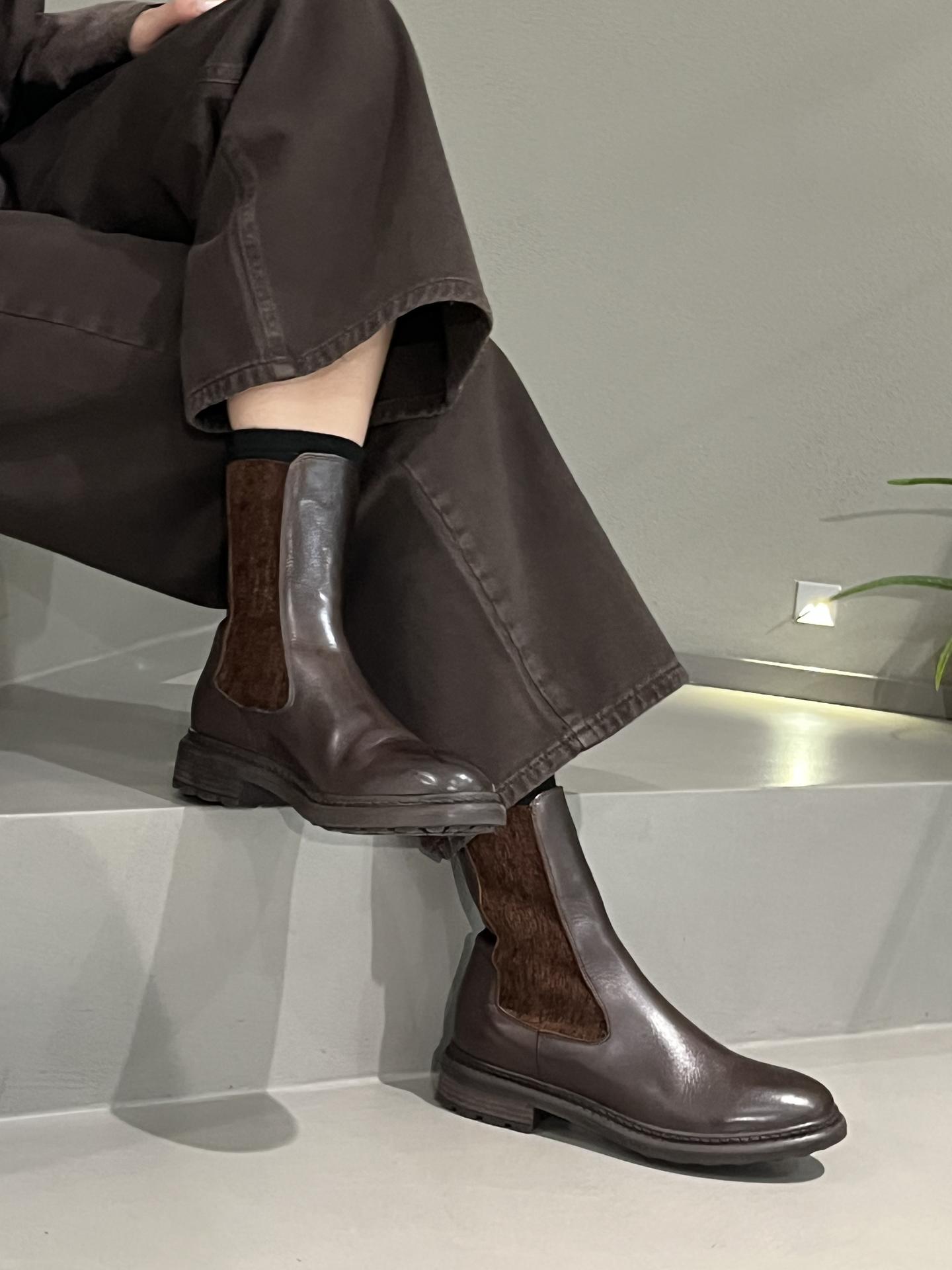 STIVALETTO IN PELLE CON INSERTI ELASTICI RIVESTITI IN VELLUTO SU AMBO I LATI. TACCO 35, FONDO GOMMA. MADE IN ITALY