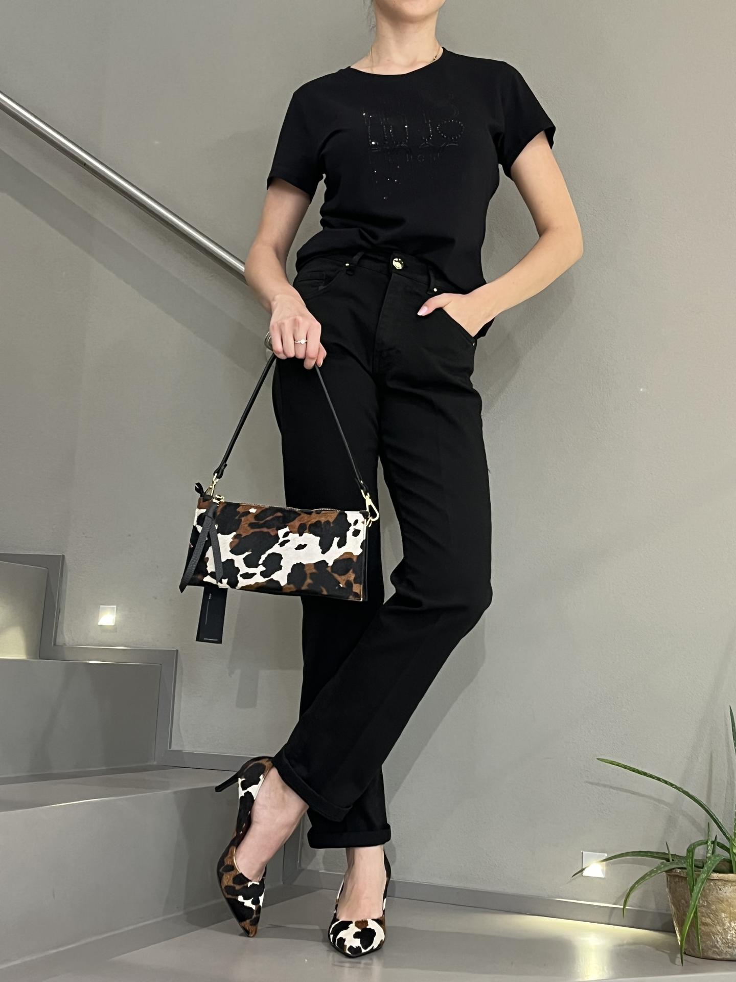 BORSA IN PELLE E CAVALLINO ANIMALIER CON ZIP DI CHIUSURA. INTERNO TRIPARTITO E FODERATO CON TASCHE. TRACOLLA IN PELLE IN TINTA INCLUSA. MISURE 27X13X6. MADE IN ITALY