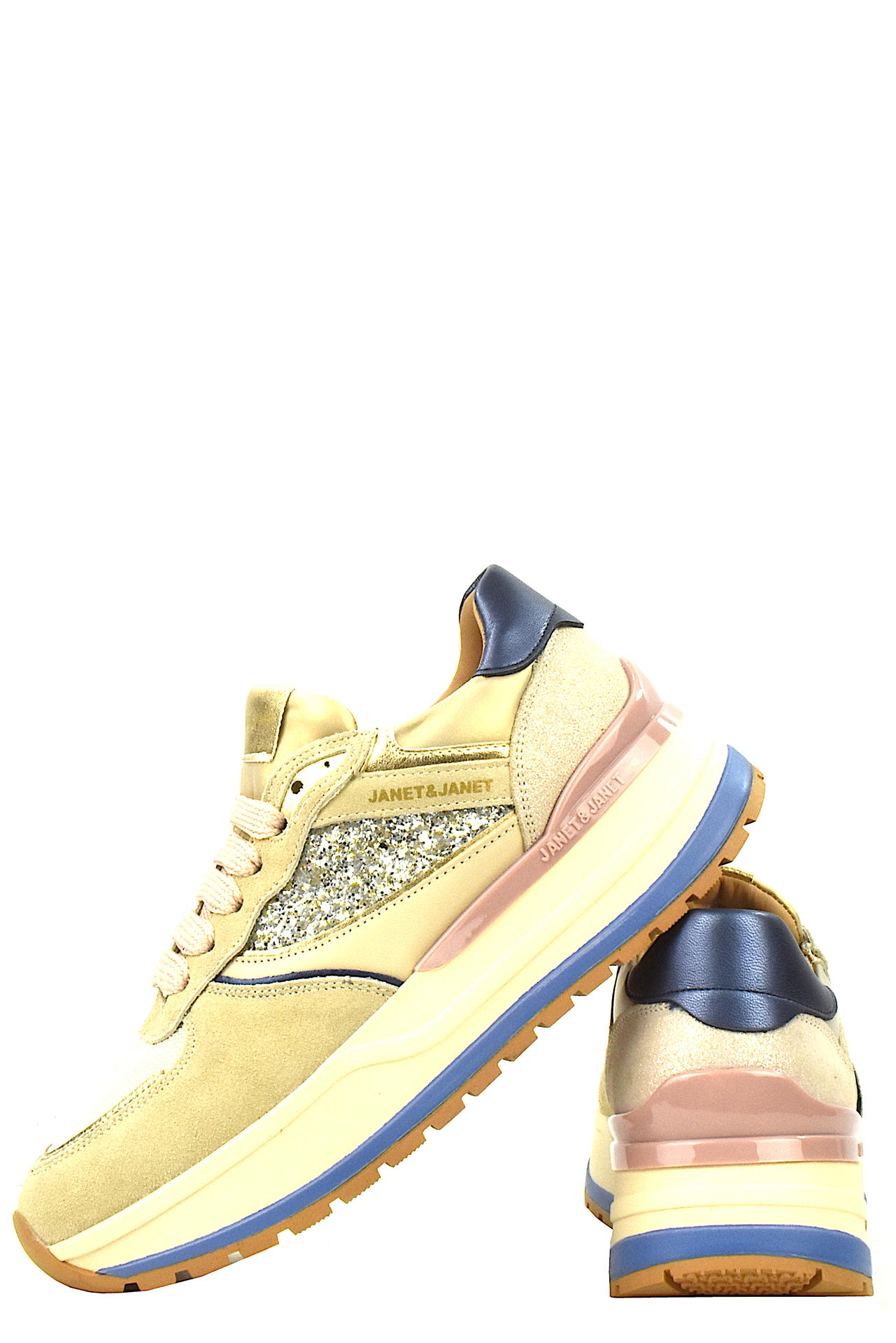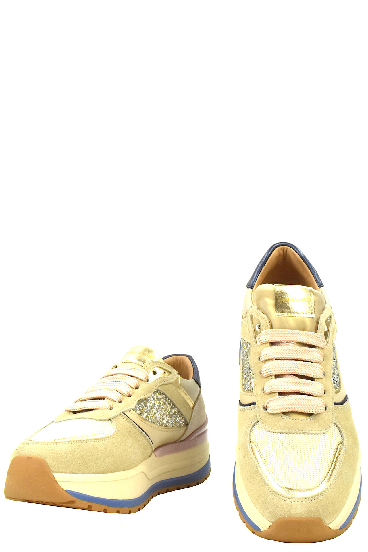 SNEAKER STRINGATA IN CAMOSCIO, SIMIL PELLE E GLITTER. PLANTARE INTERNO ESTRAIBILE. TACCO 40, PLATFORM 30, FONDO GOMMA.