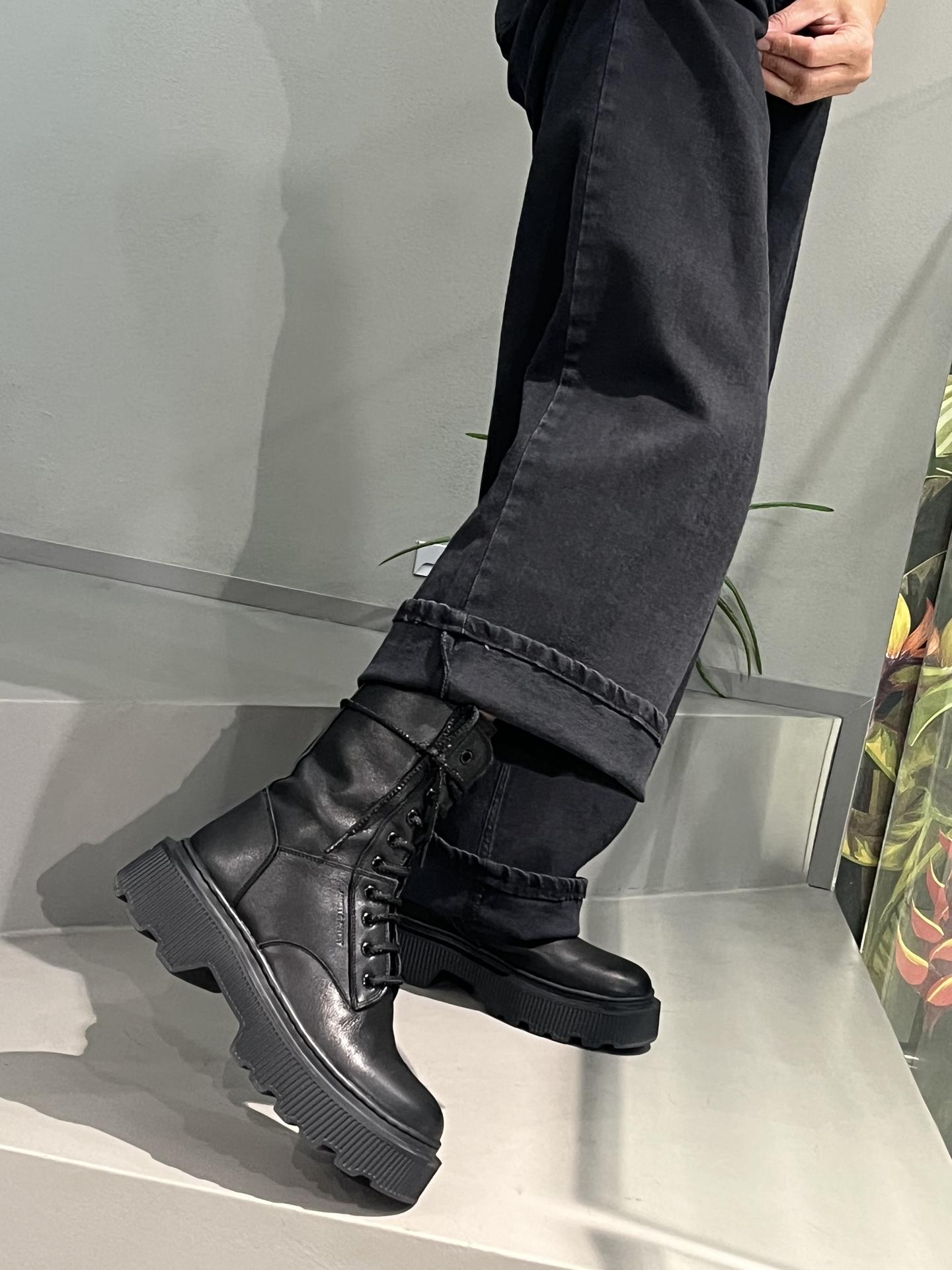 ANFIBIO STRINGATO IN PELLE CON ZIP SU LATO INTERNO. TACCO 50, PLATFORM 40, FONDO GOMMA LIGHT