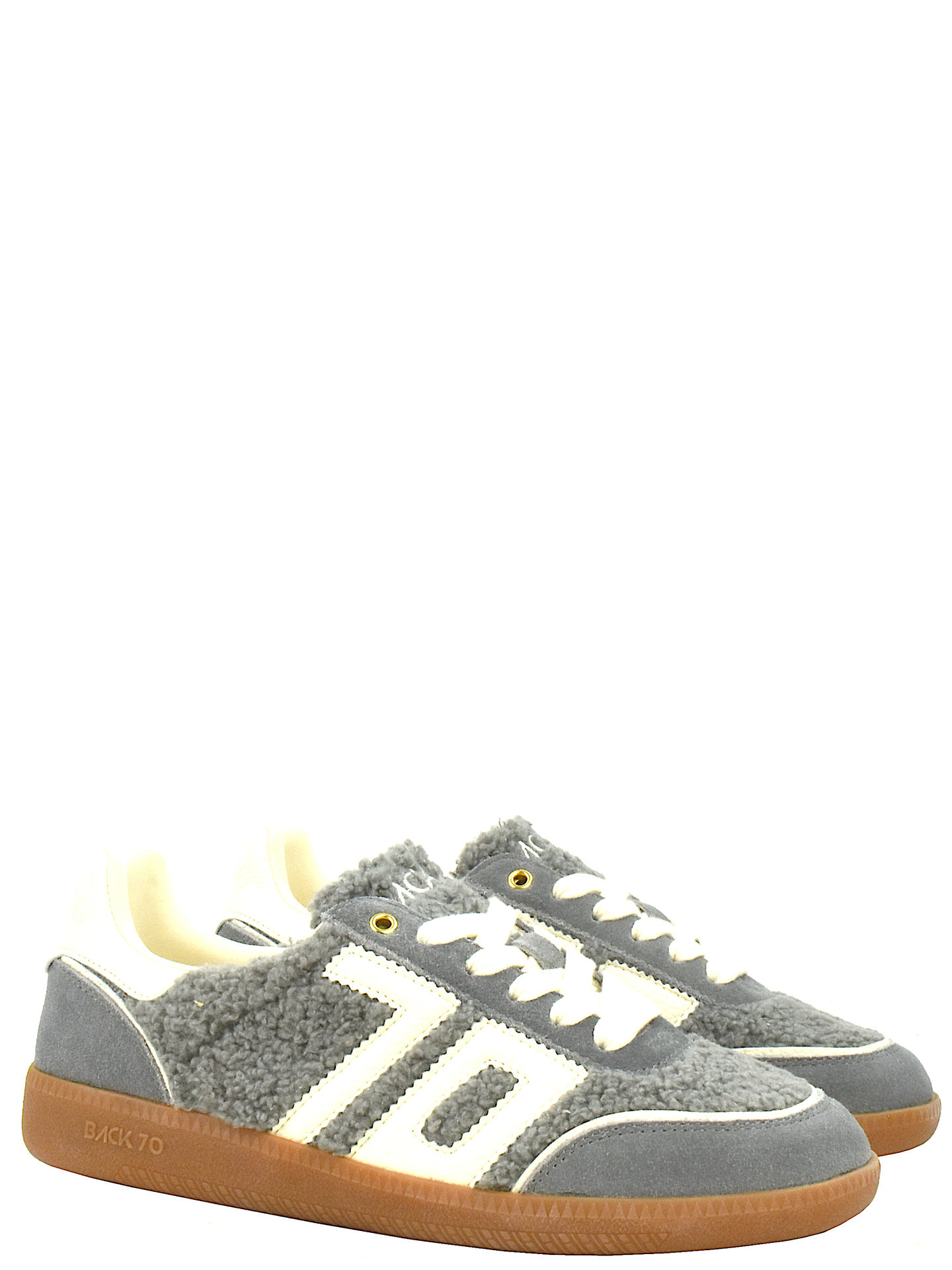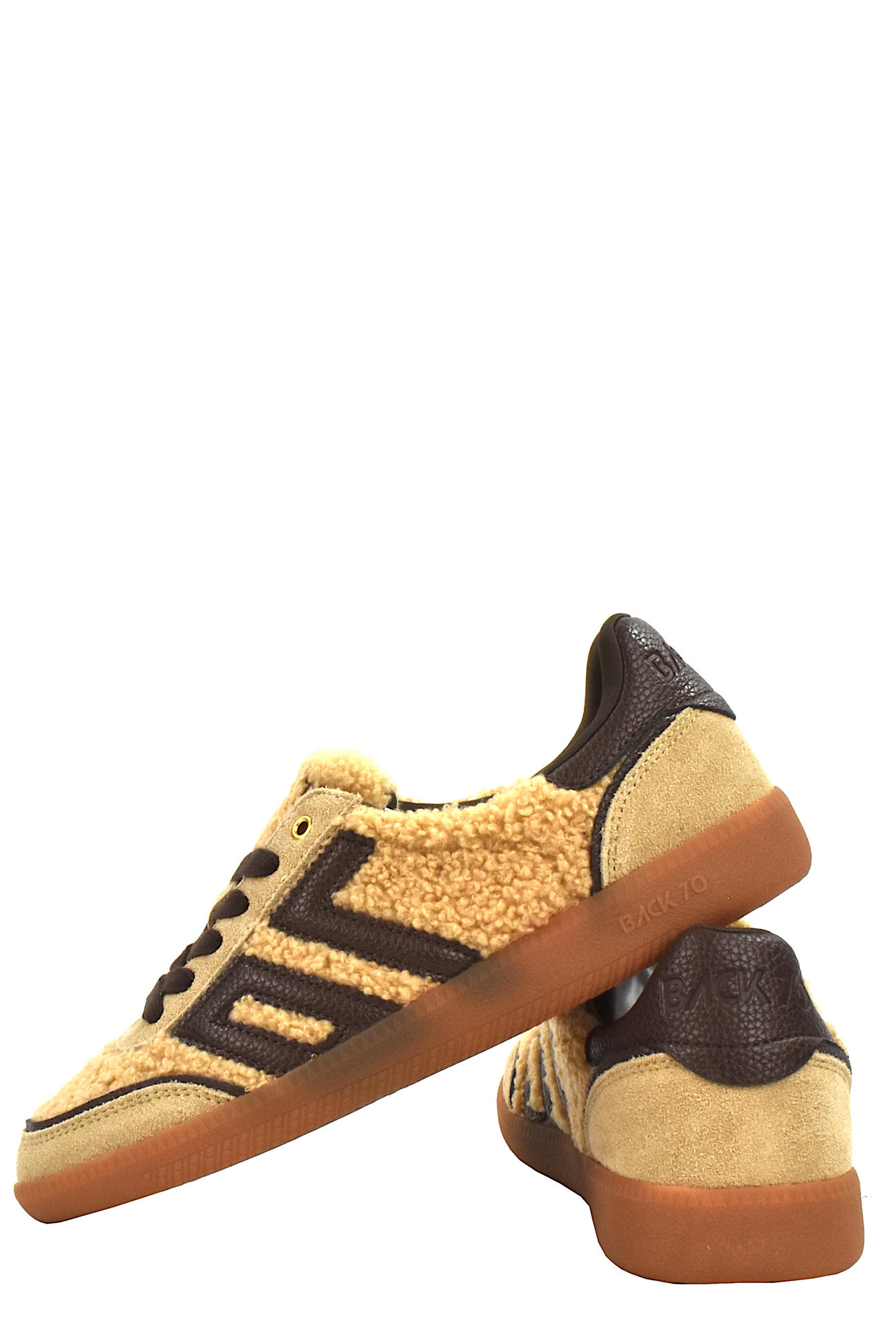 SNEAKER STRINGATA IN PELLE, CAMOSCIO E TESSUTO "TEDDY". PLANTARE INTERNO ESTRAIBILE. TACCO 25, FONDO GOMMA.
