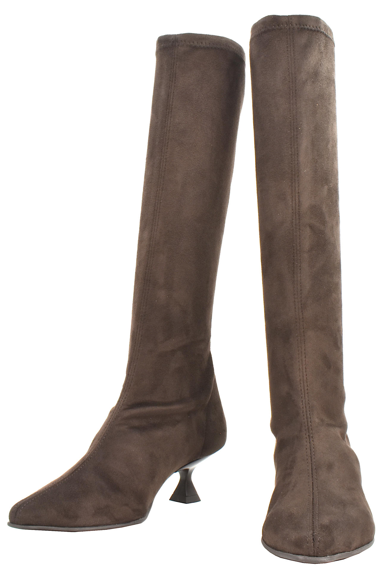 STIVALE IN ALCANTARA ELASTICIZZATA. MISURA DEL GAMBALE (DAL TALLONE COMPRESO IN SU) 395. TACCO 50, FONDO GOMMA. MADE IN SPAIN