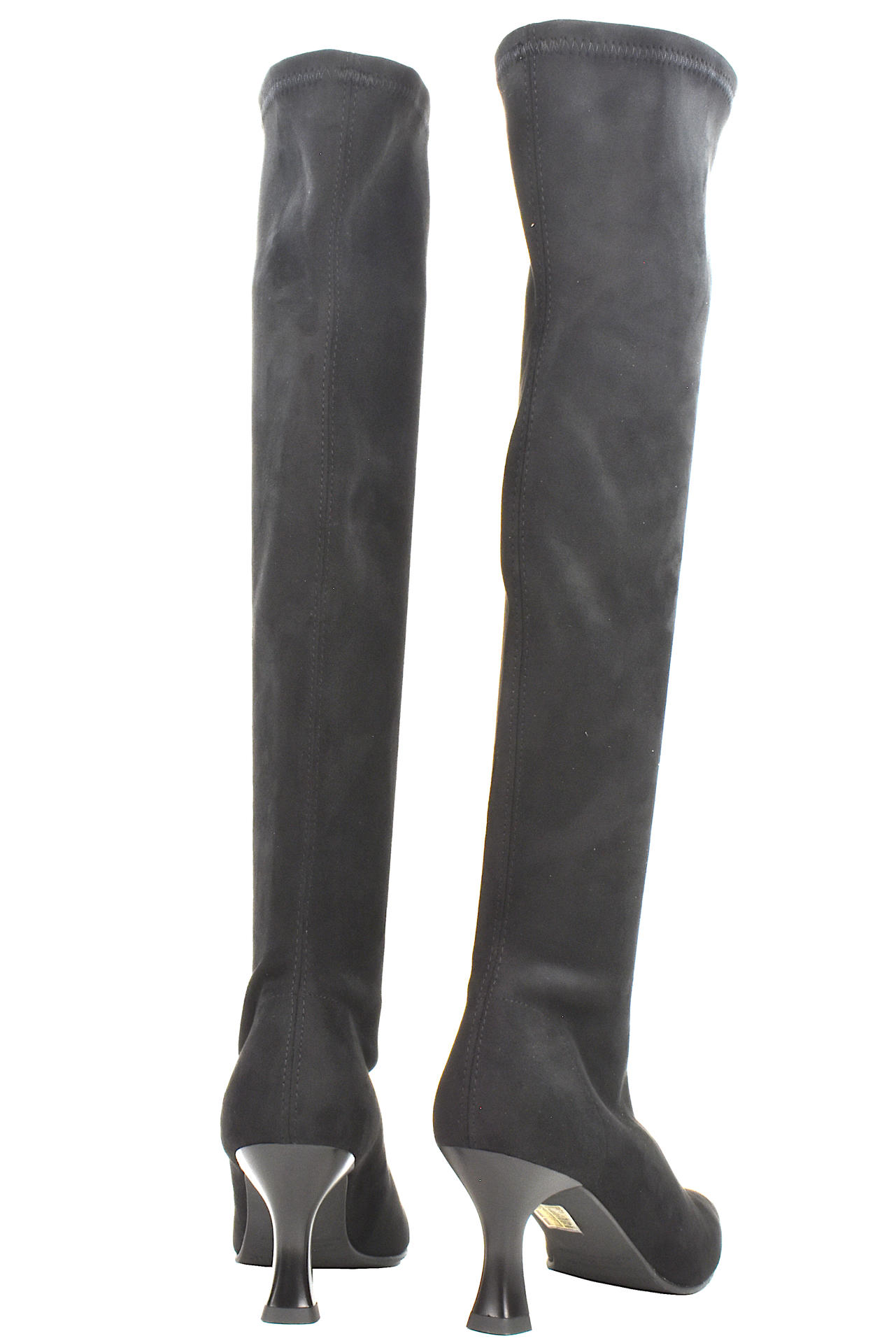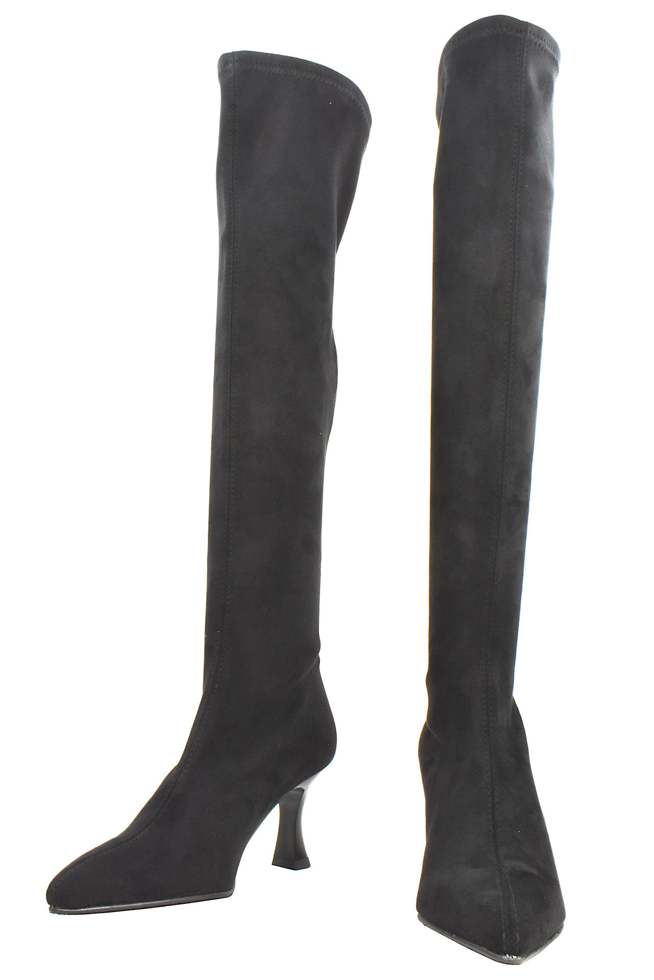 STIVALE IN ALCANTARA ELASTICIZZATA. MISURA DEL GAMBALE (DAL TALLONE COMPRESO IN SU) 485. TACCO 75, FONDO GOMMA. MADE IN SPAIN