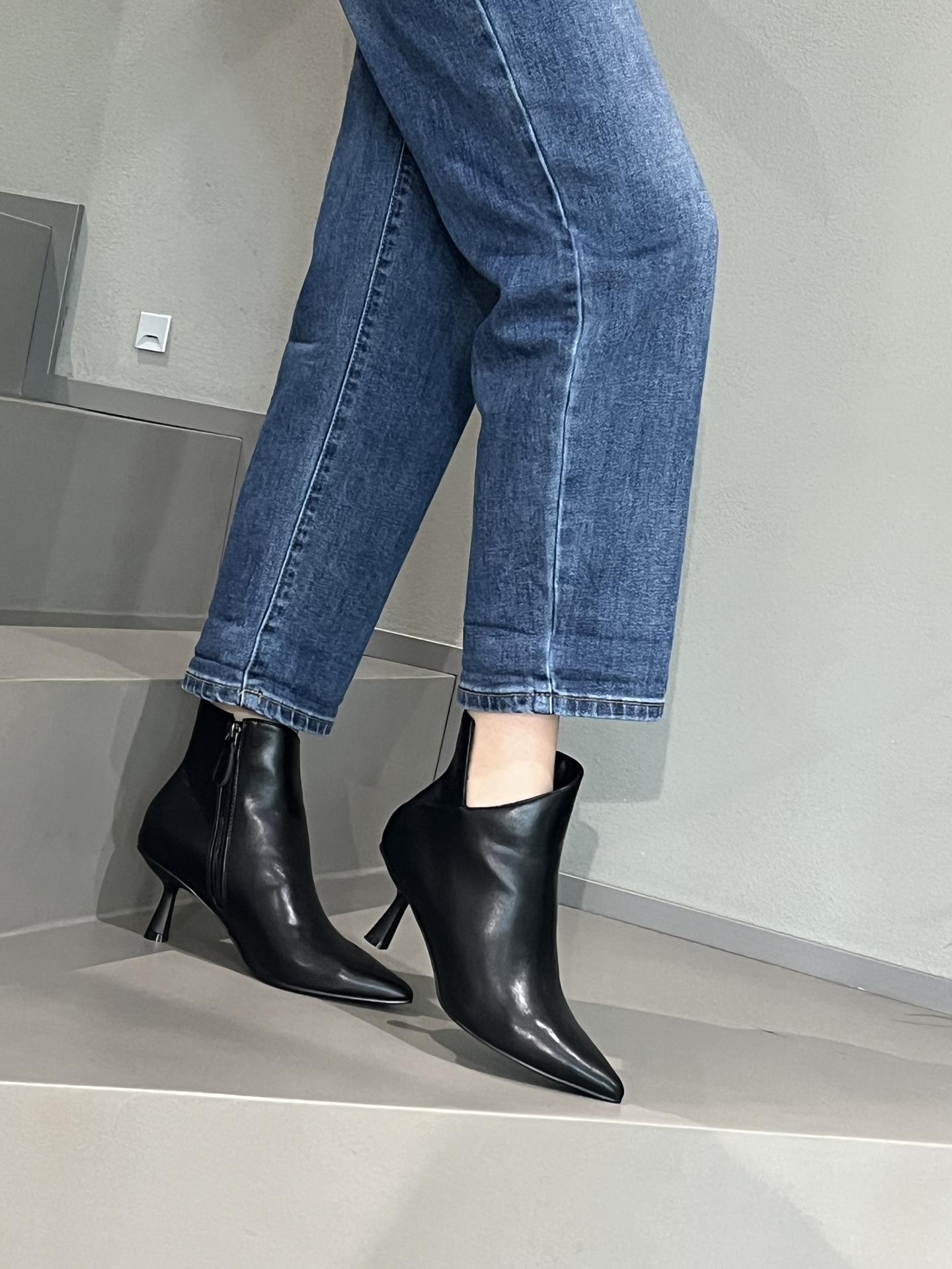 STIVALETTO IN PELLE CON ZIP SU LATO INTERNO. TACCO 65, FONDO GOMMA.