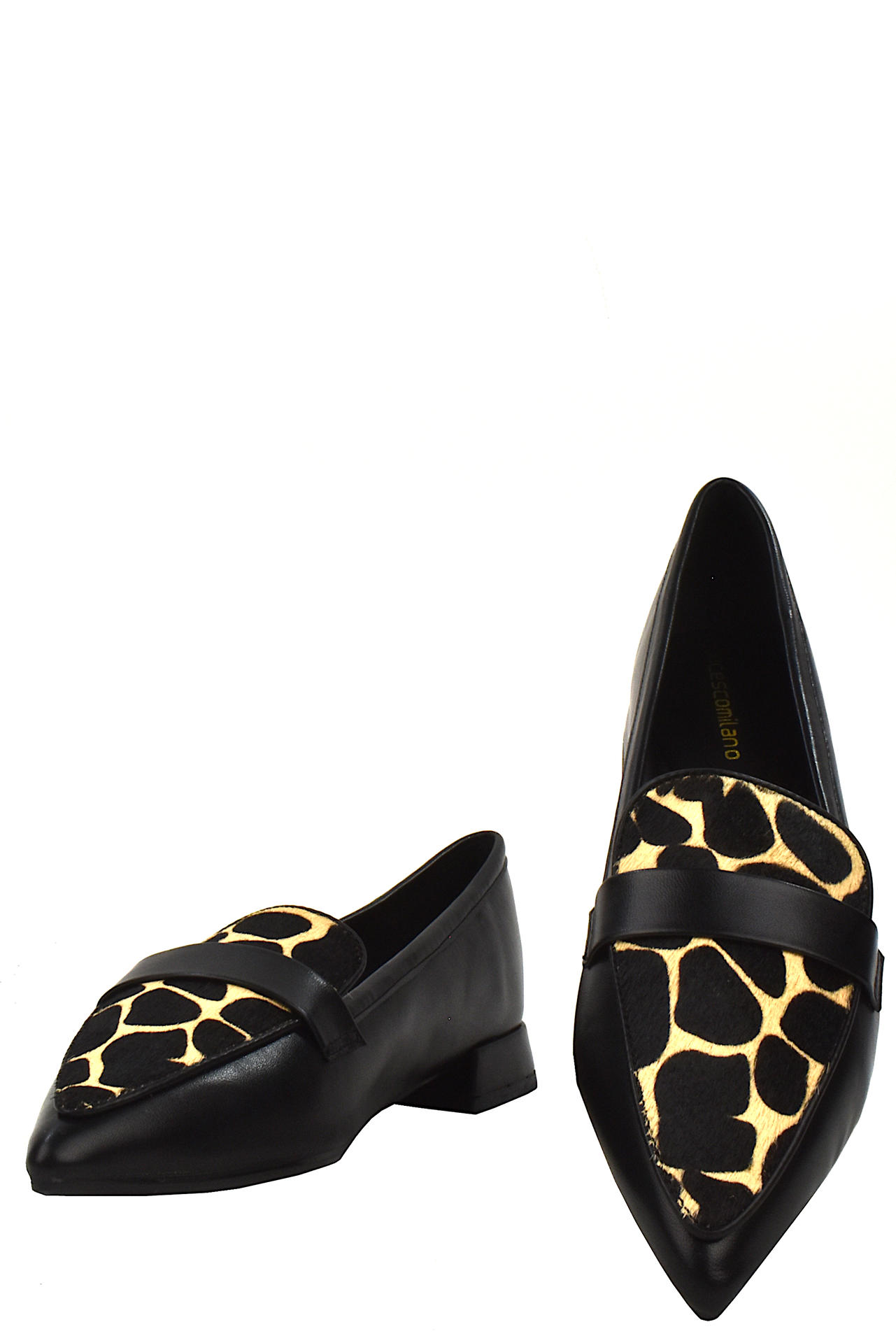 SCARPA IN PELLE E SIMIL PELLE CON VASCHETTA ANIMALIER. TACCO 20, FONDO GOMMA.