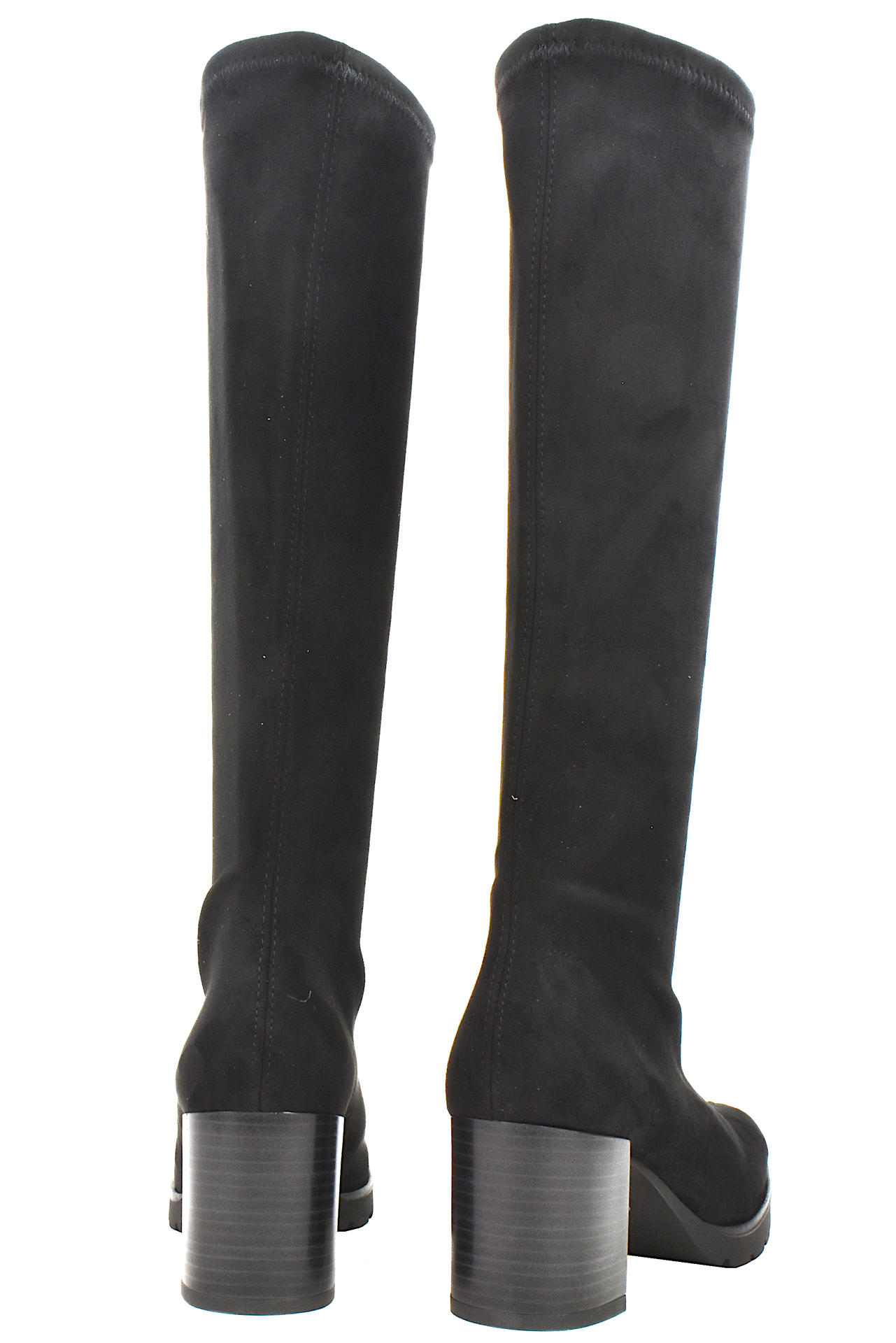 STIVALE IN ALCANTARA ELASTICIZZATA. MISURA DEL GAMBALE (DAL TALLONE COMPRESO IN SU) 380. TACCO 65, PLATFORM 15, FONDO GOMMA.