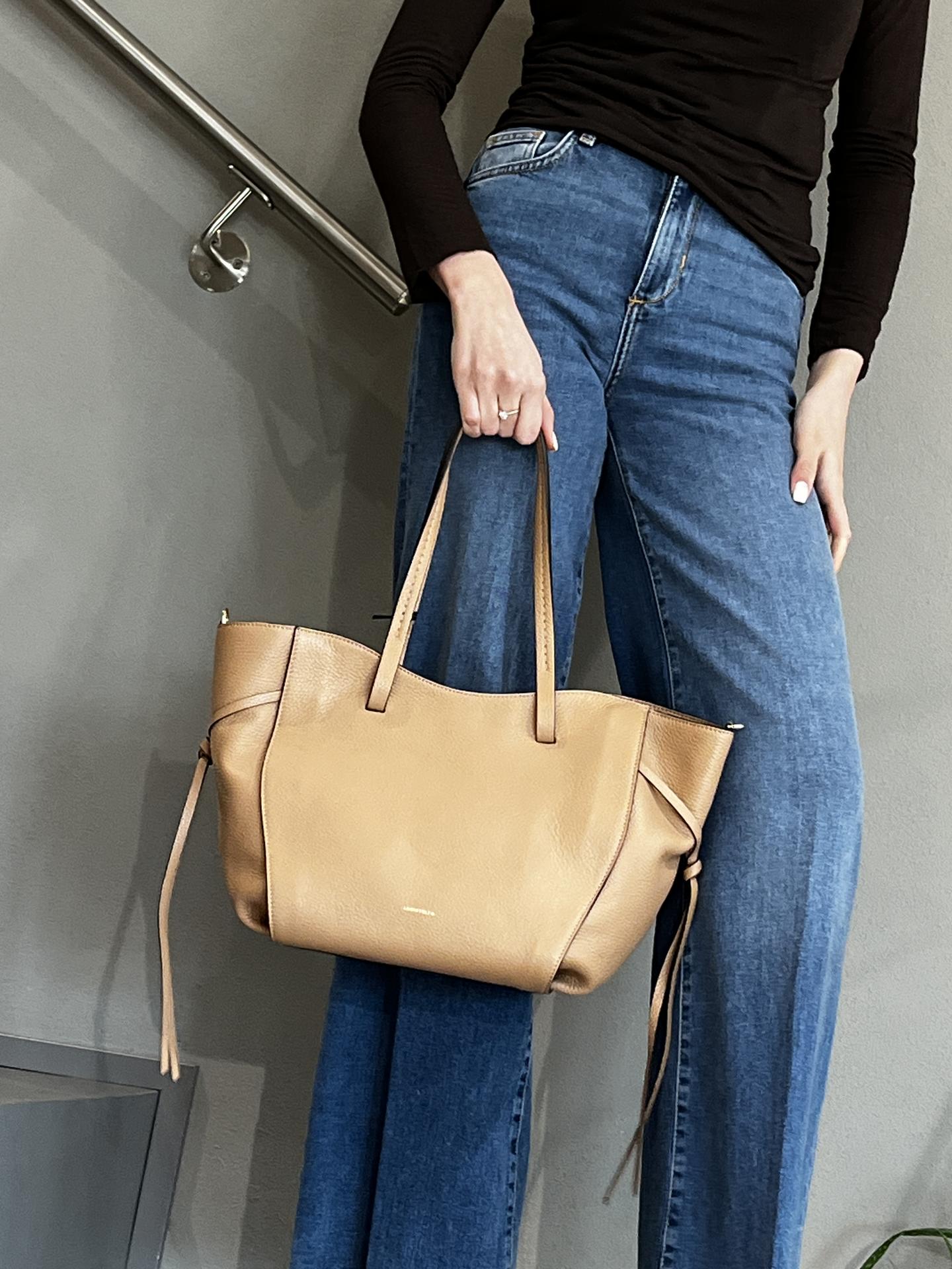 BORSA IN PELLE CON ZIP DI CHIUSURA. INTERNO FODERATO E CON TASCHE. TRACOLLA IN PELLE IN TINTA INCLUSA. MISURE 22X24X17. MADE IN ITALY