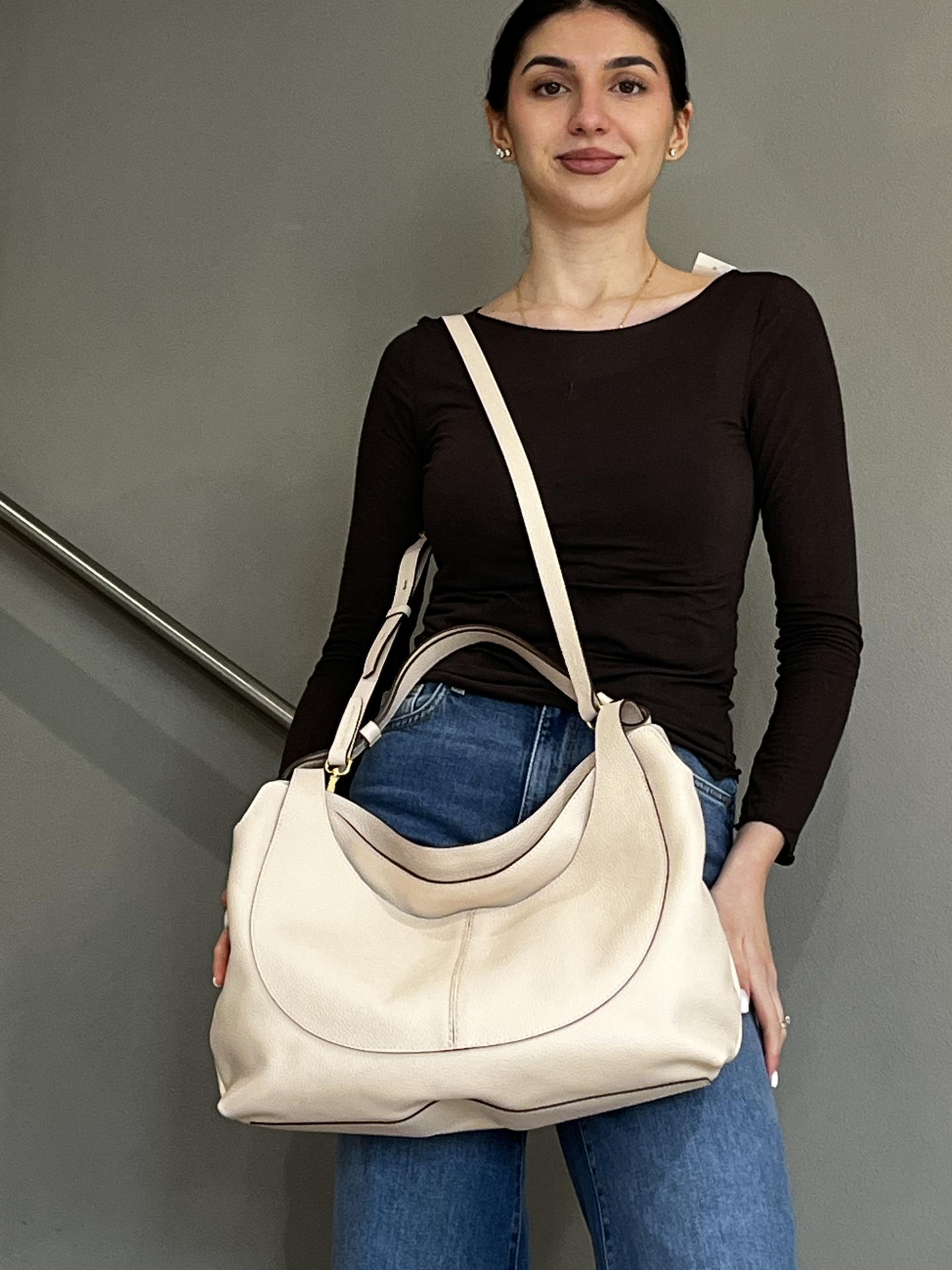 BORSA IN PELLE CON ZIP DI CHIUSURA. INTERNO FODERATO E CON TASCHE. TRACOLLA IN PELLE IN TINTA INCLUSA. MISURE 39X26X13. MADE IN ITALY