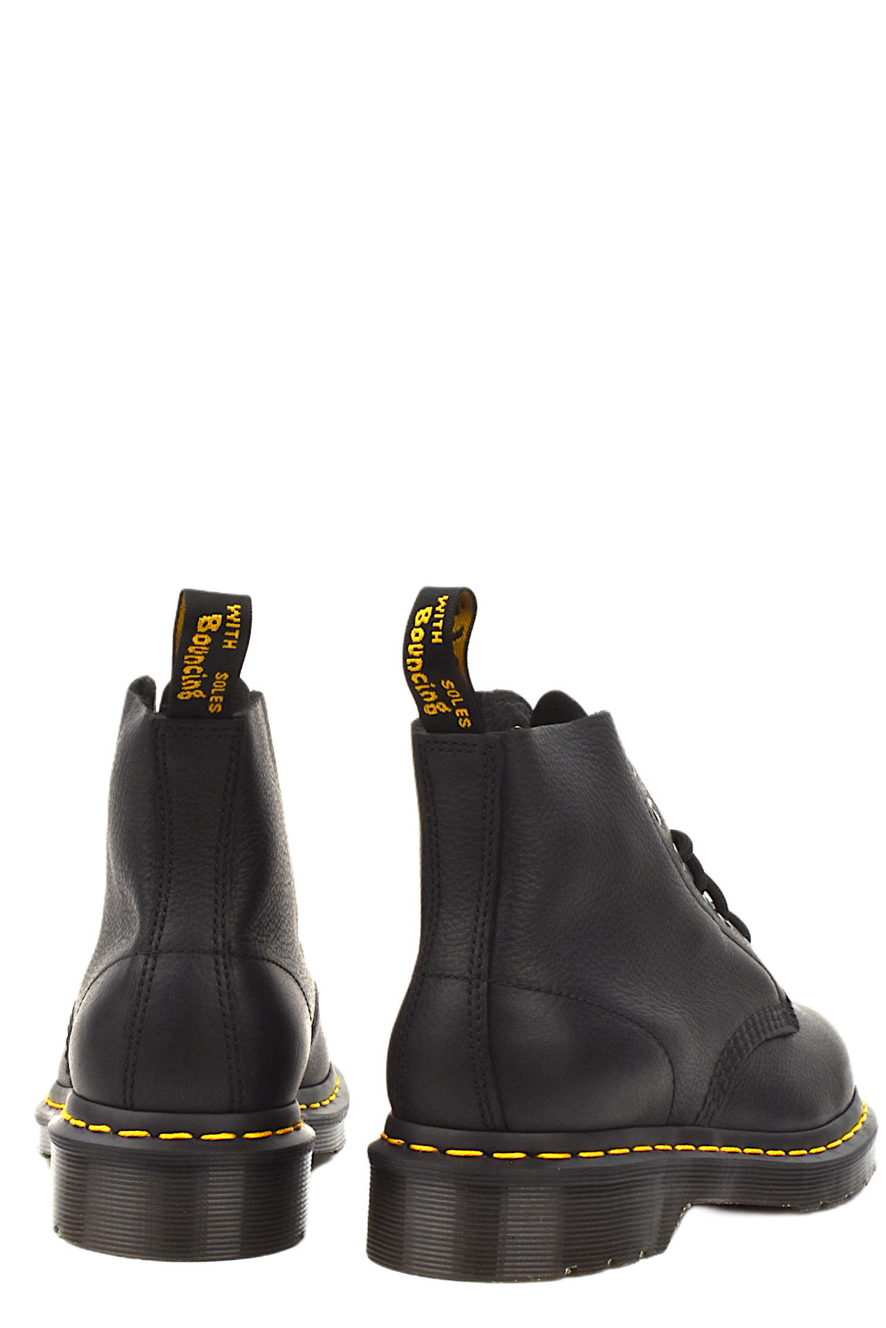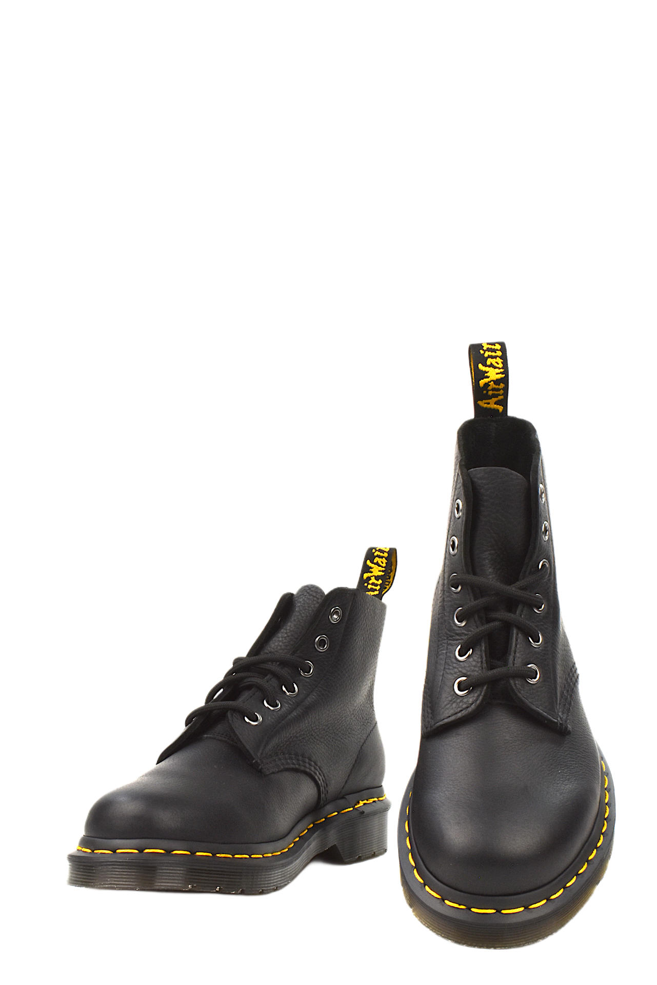 STIVALETTO STRINGATO 6 FORI IN MORBIDISSIMA PELLE AMBASSADOR MARTELLATA. TACCO 35, FONDO GOMMA DR MARTENS E DETTAGLI TIPICI DEL MARCHIO: IMPUNTURE GIALLE E FUTTUCCIA SUL RETRO.