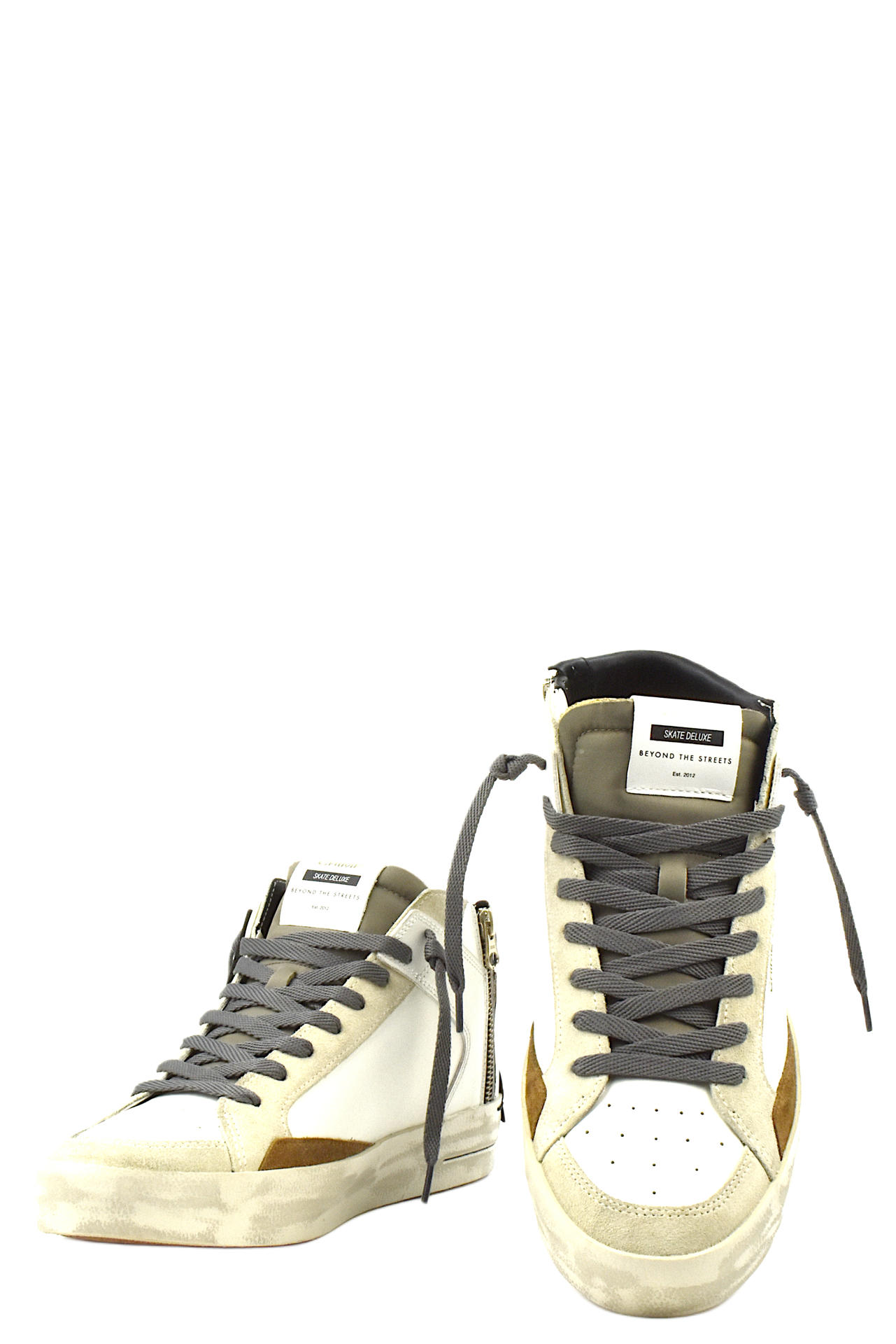 SNEAKER MID IN PELLE CON RIFINITURE IN CAMOSCIO E LIGUETTA IN MORBIDO TESSUTO TECNICO. ZIP SU LATO INTERNO. PLANTARE INTERNO ESTRAIBILE. TACCO 30, FONDO GOMMA.