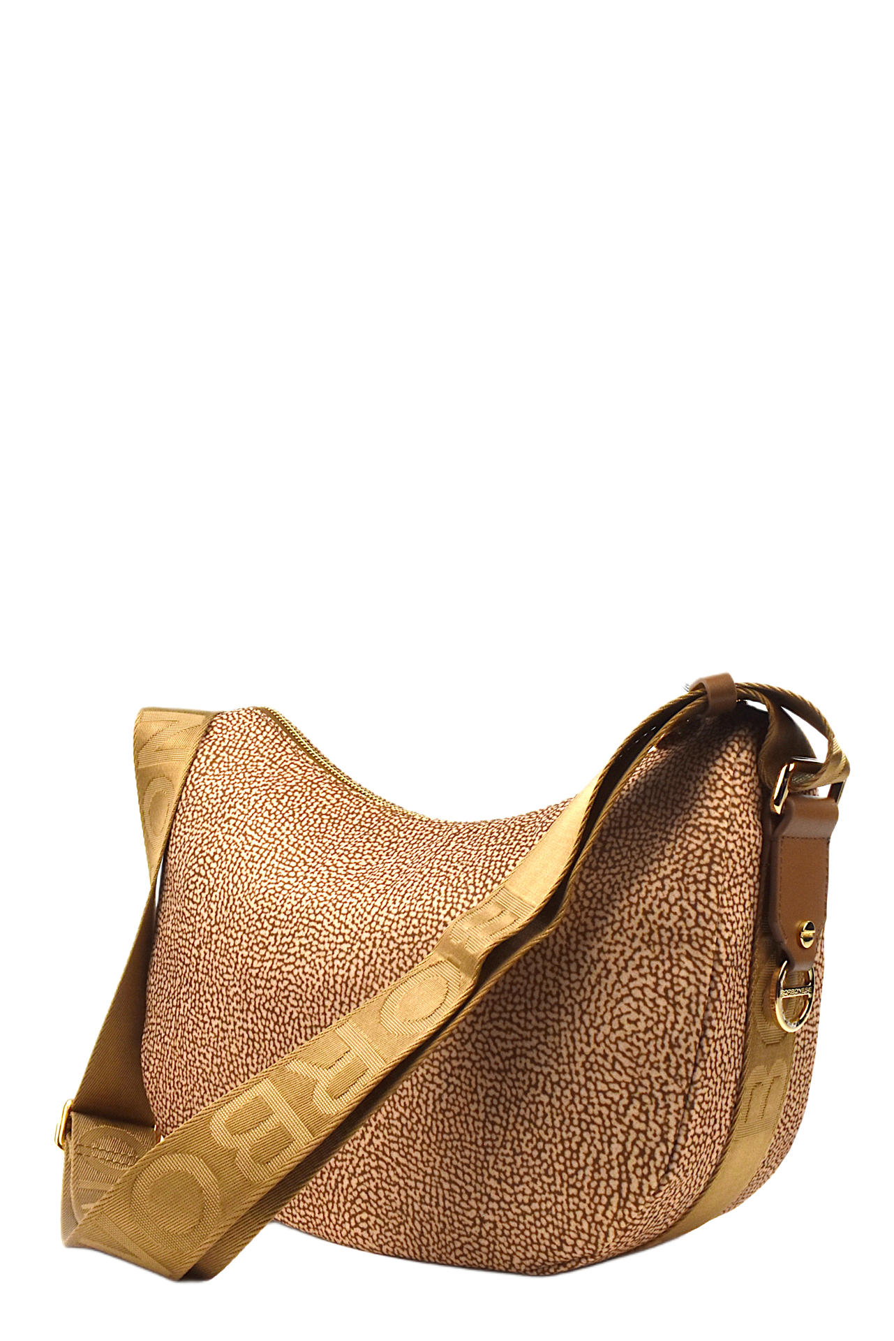 BORSA IN TESSUTO LOGATO EFFETTO TAPIRO CON AMPIA ZIP DI CHIUSURA. INTERNO FODERATO E CON TASCHE. TRACOLLA IN TESSUTO REGOLABILE. TASCA FRONTALE CON ZIP. MISURE 31X22X11