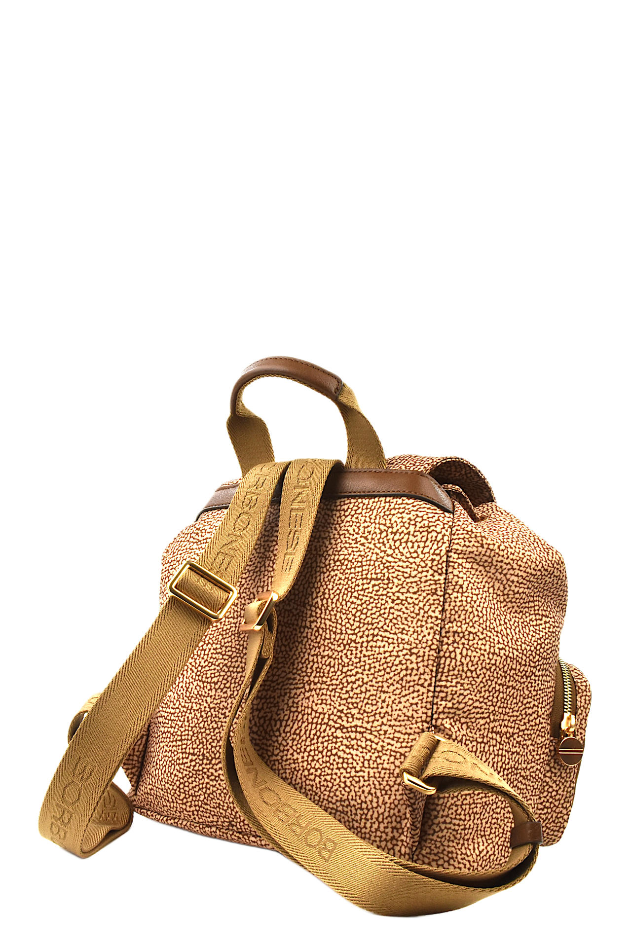 ZAINO IN TESSUTO TECNICO CON STAMPA TAPIRO E RIFINITURE IN PELLE. PATTA CON GANCIO DI CHIUSURA E COULISSE. INTERNO FODERATO. SPALLACCI IN TESSUTO REGOLABILI. TASCHE FRONTALI CON ZIP. MISURE 23X25X13