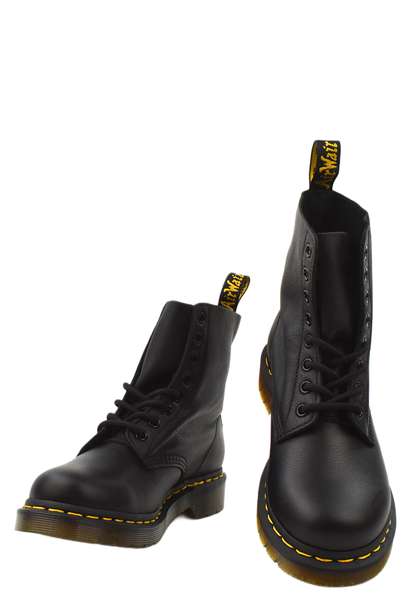 STIVALETTO 8 FORI IN MORBIDA PELLE "VIRGINIA" CON TAGLIO VIVO. PLANTARE INTERNO ESTRAIBILE. DETTAGLI TIPICI DEL NOTO MARCHIO: RIFINITURE GIALLE NEL PERIMETRO DELLA SUOLA E FETTUCCIA LOGATA SUL RETRO. TACCO 35, FONDO GOMMA.
