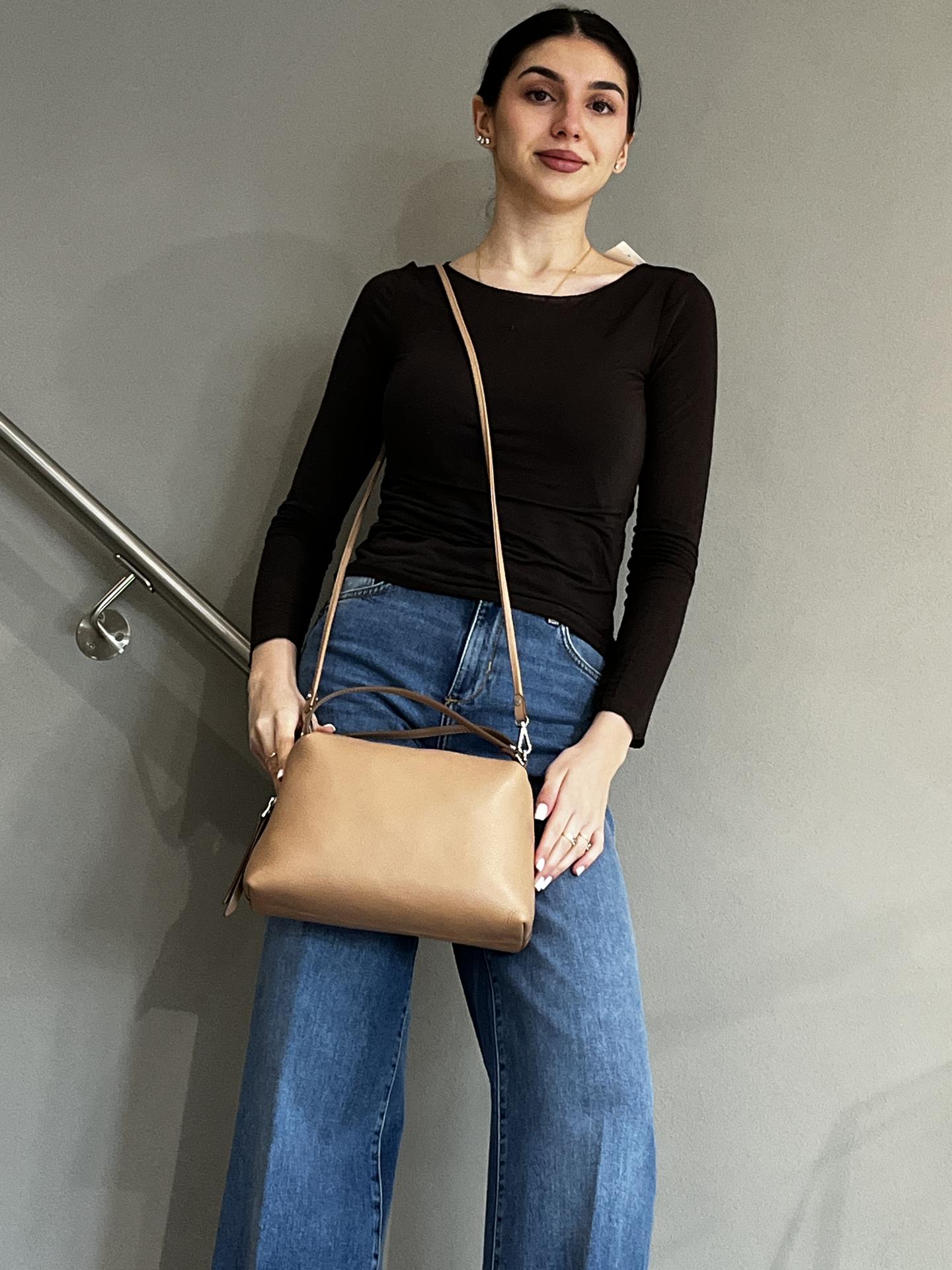 BORSA "ALIFA" IN PELLE CON ZIP DI CHIUSURA ED INTERNO FODERATO CON TASCHE. TRACOLLA IN PELLE IN TINTA INCLUSA. MISURE 25,5X16X10