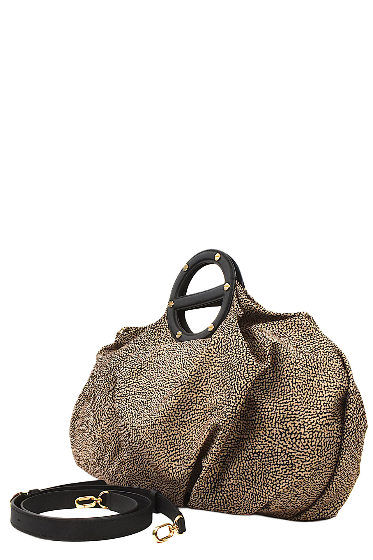 BORSA IN TESSUTO TECNICO CON STAMPA EFFETTO TAPIRO E RIFINITURE IN PELLE. BOTTONI MAGNETICI DI CHIUSURA.INTERNO FODERATO E CON TASCHE. TRACOLLA IN PELLE INCLUSA. MISURE 50X29X16