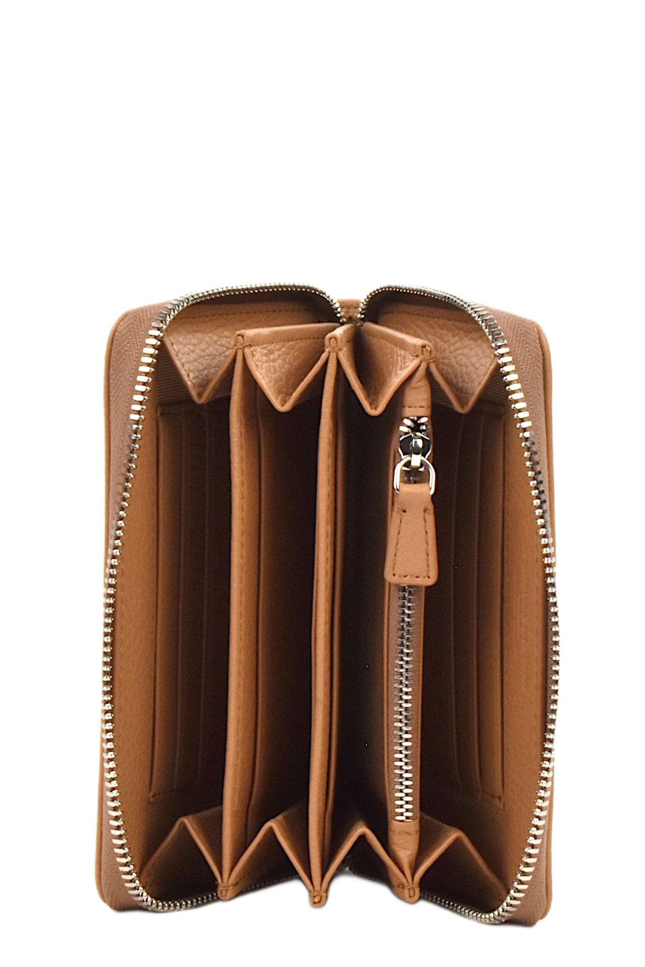 PORTAFOGLIO IN PELLE CON ZIP DI CHIUSURA. INTERNO SUDDIVISO IN MOLTEPLICI FESSURE PER TESSERE E CONTANTI E TASCA CON ZIP PER MONETE. MISURE 15X10X2,5