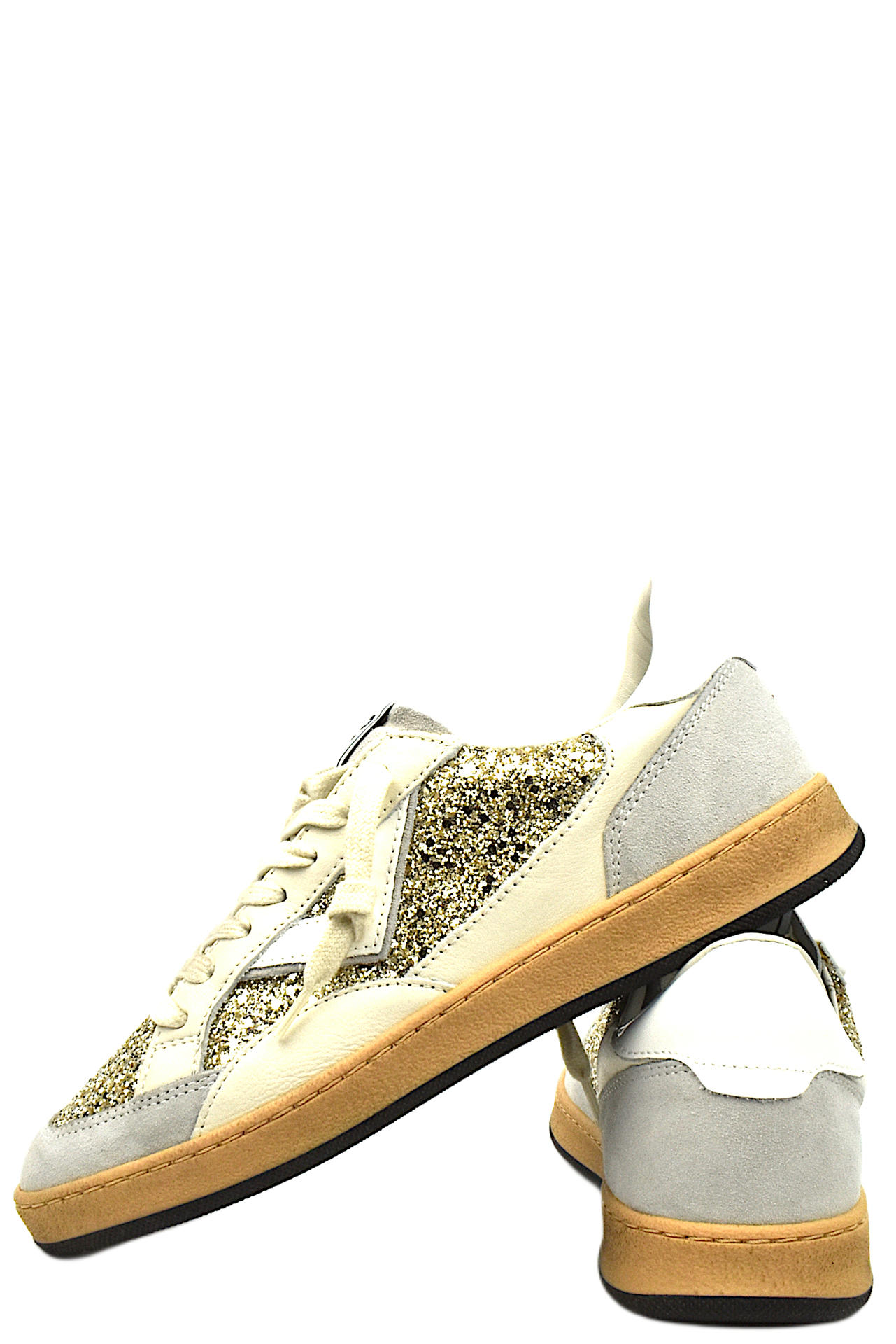 SNEAKER STRINGATA IN CAMOSCIO, PELLE E GLITTER. PLANTARE INTERNO ESTRAIBILE. TACCO 25, FONDO GOMMA. MADE IN ITALY