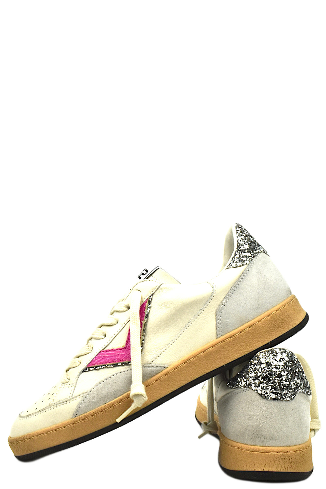 SNEAKER STRINGATA IN PELLE CON DETTAGLI IN CAMOSCIO E GLITTER. PLANTARE INTERNO ESTRAIBILE. TACCO 25, FONDO GOMMA. MADE IN ITALY