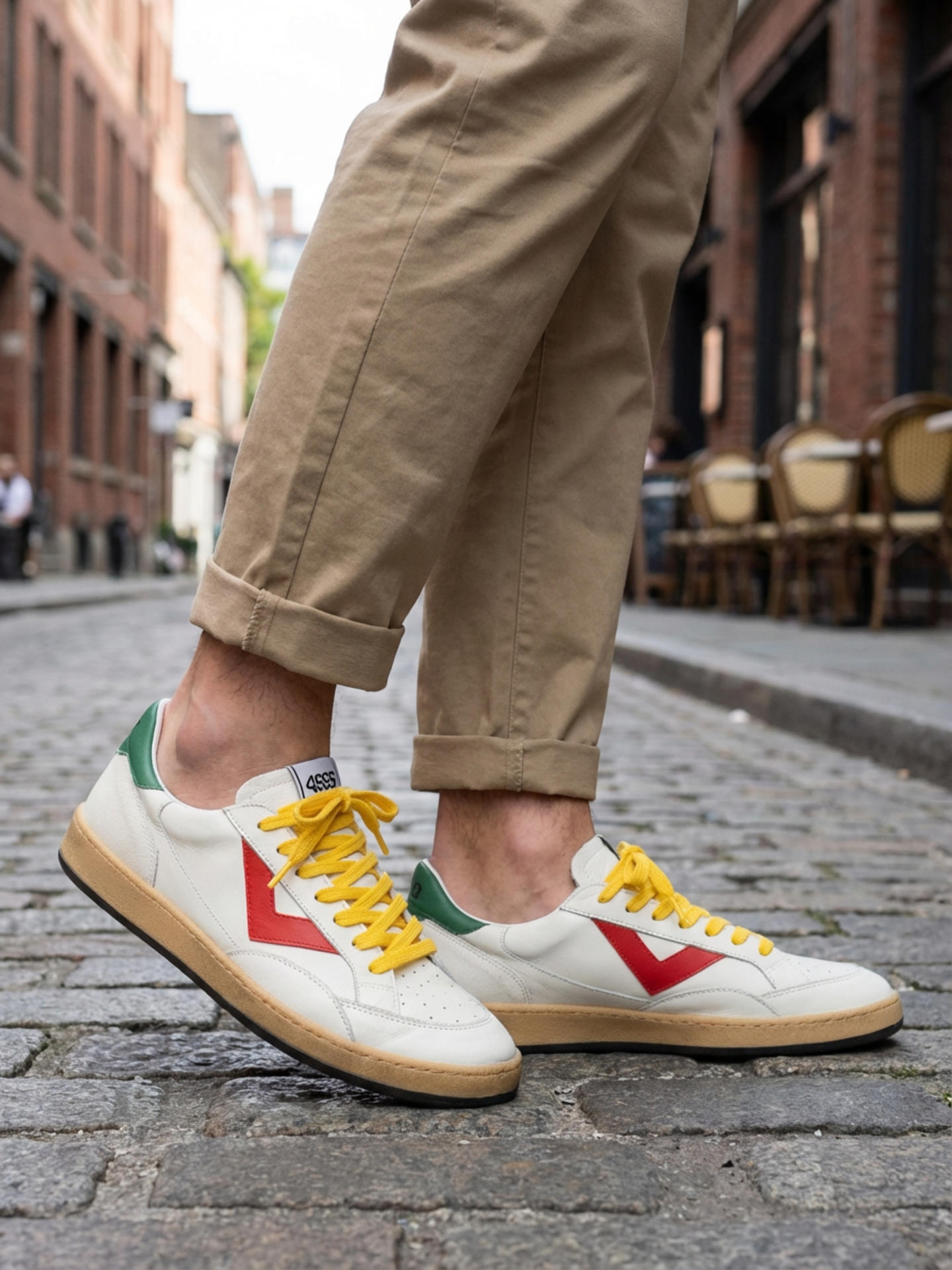 SNEAKER STRINGATA IN PELLE. PLANTARE INTERNO ESTRAIBILE. TACCO 30, FONDO GOMMA. MADE IN ITALY