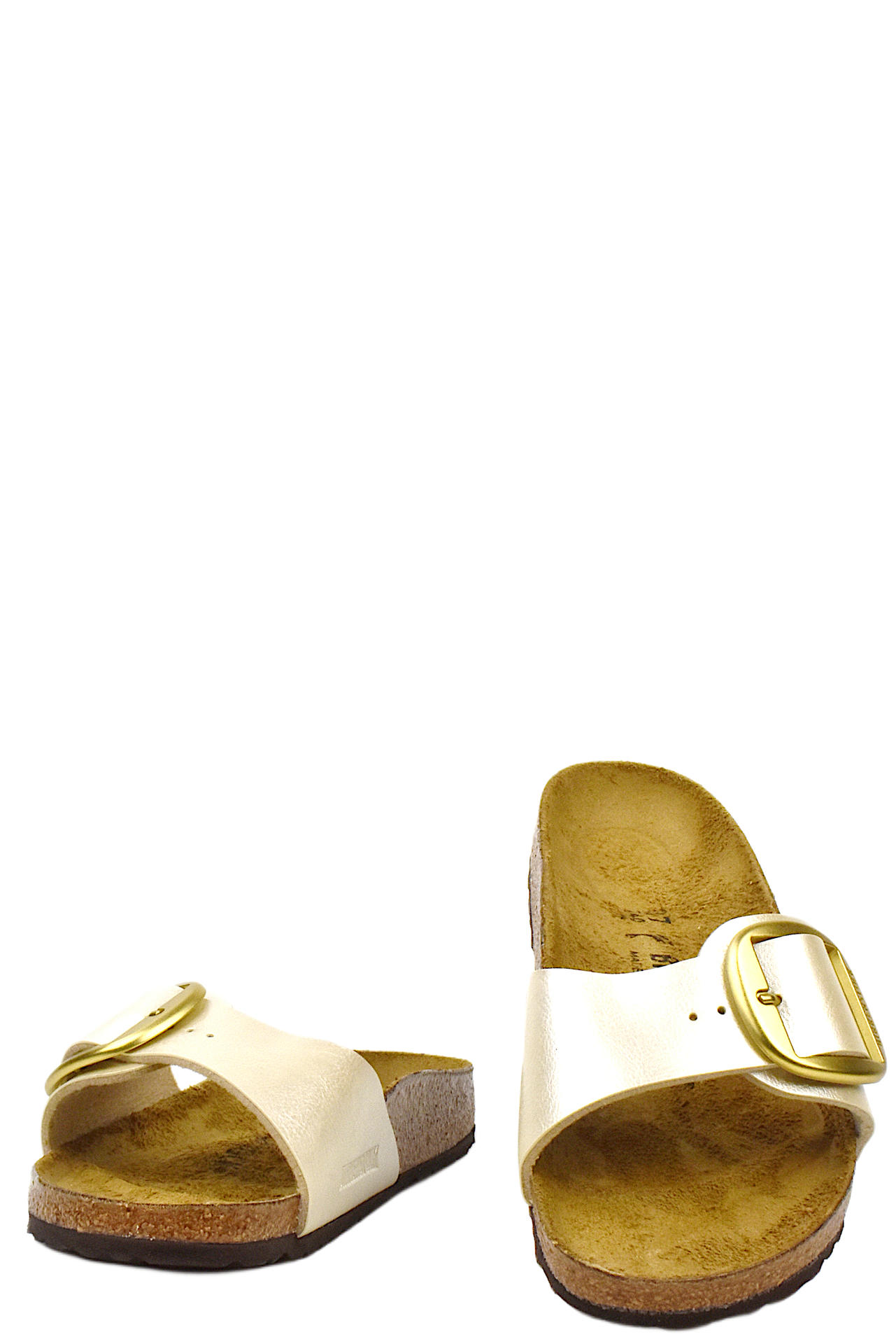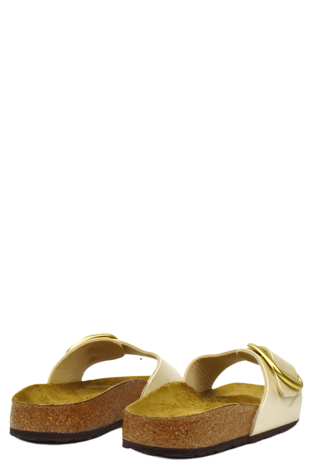 CIABATTINA MADRID IN PELLE PERLATA CON FIBBIA. SOTTOPIEDE INTERNO BIRKENSTOCK IN PELLE, PLANTARE IN SUGHERO E FONDO GOMMA. MADE IN GERMANY