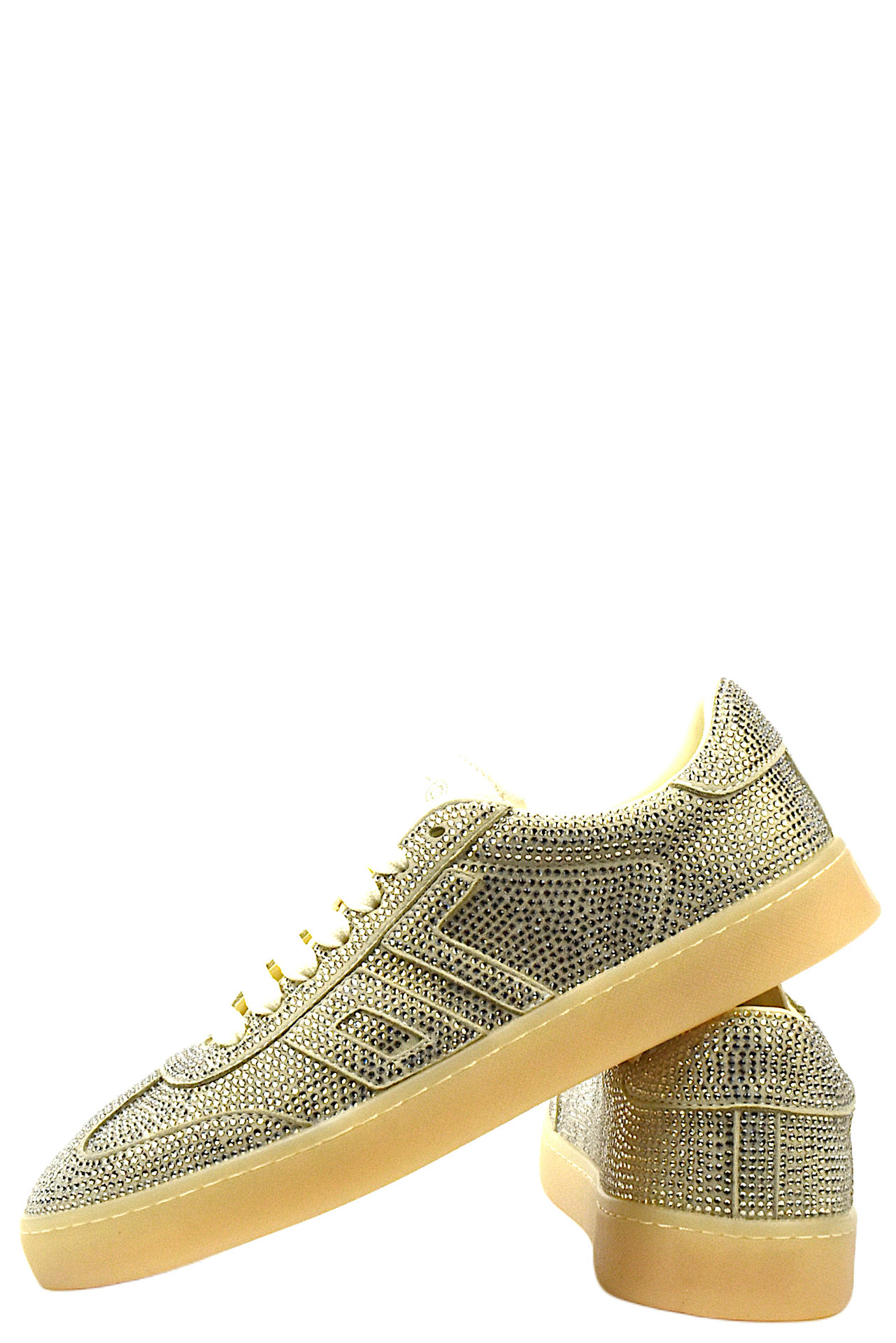 SNEAKER STRINGATA IN PELLE E TESSUTO SCAMOSCIATO CON APPLICAZIONE DI STRASS. PLANTARE INTERNO ESTRAIBILE. TACCO 25, FONDO GOMMA.