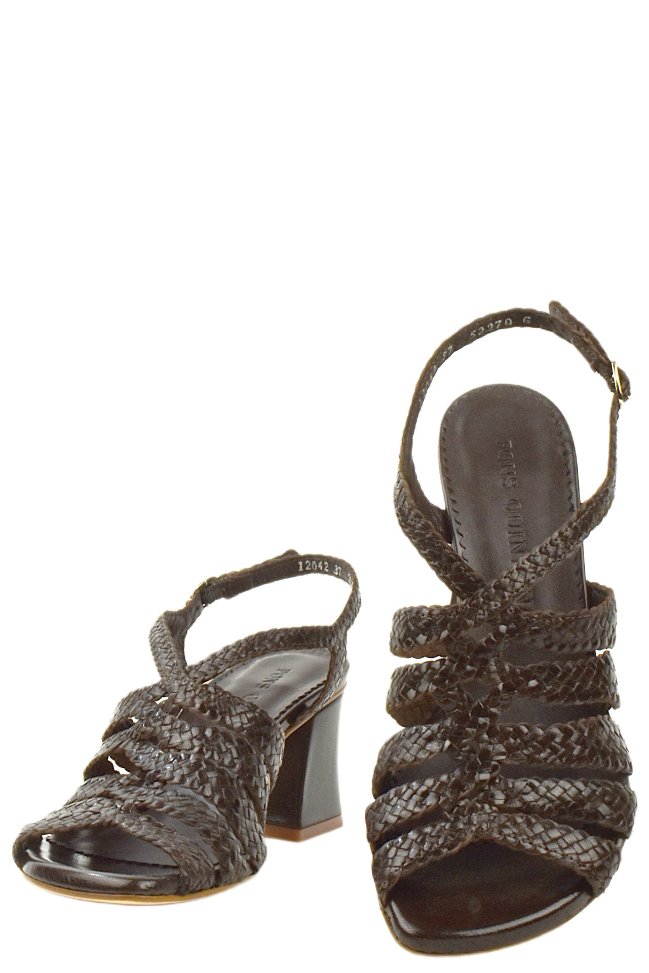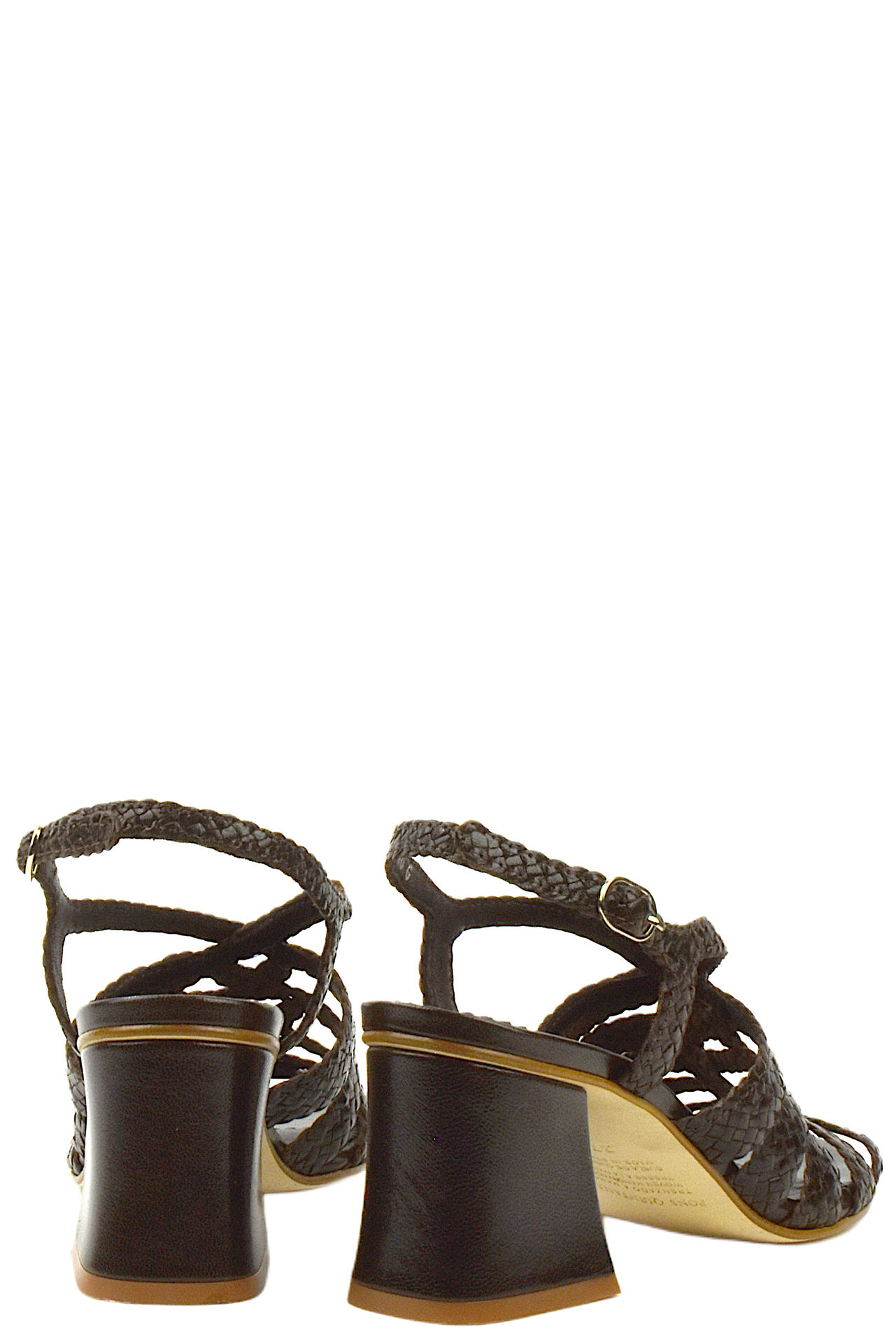 SANDALO IN PELLE INTRECCIATA CON CINTURINO SUL RETRO. TACCO 65, FONDO CUOIO. MADE IN SPAIN