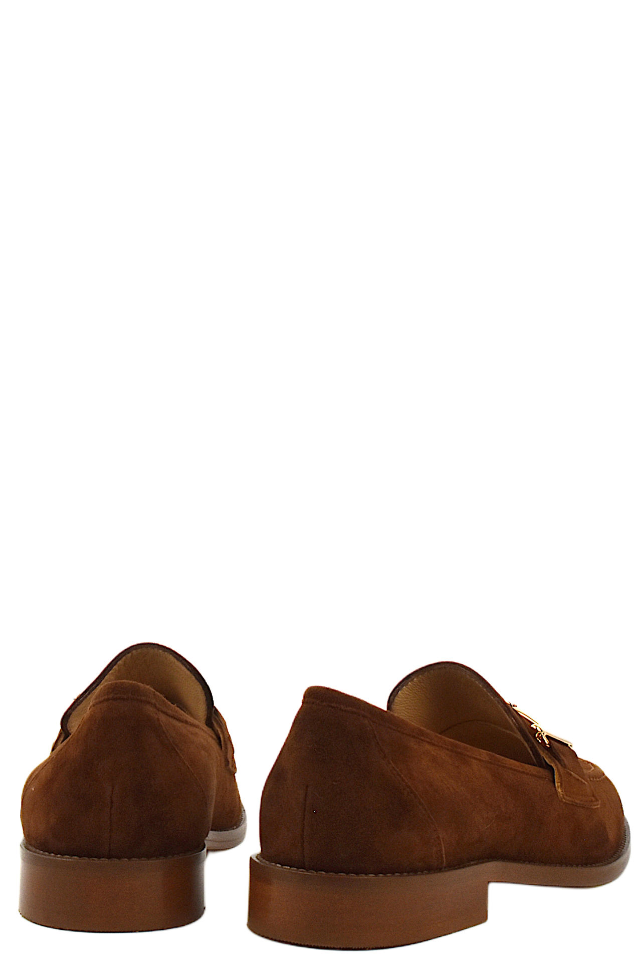 MOCASSINO IN CAMOSCIO CON ACCESSORIO FRONTALE. TACCO 25, FONDO CUOIO. MADE IN ITALY