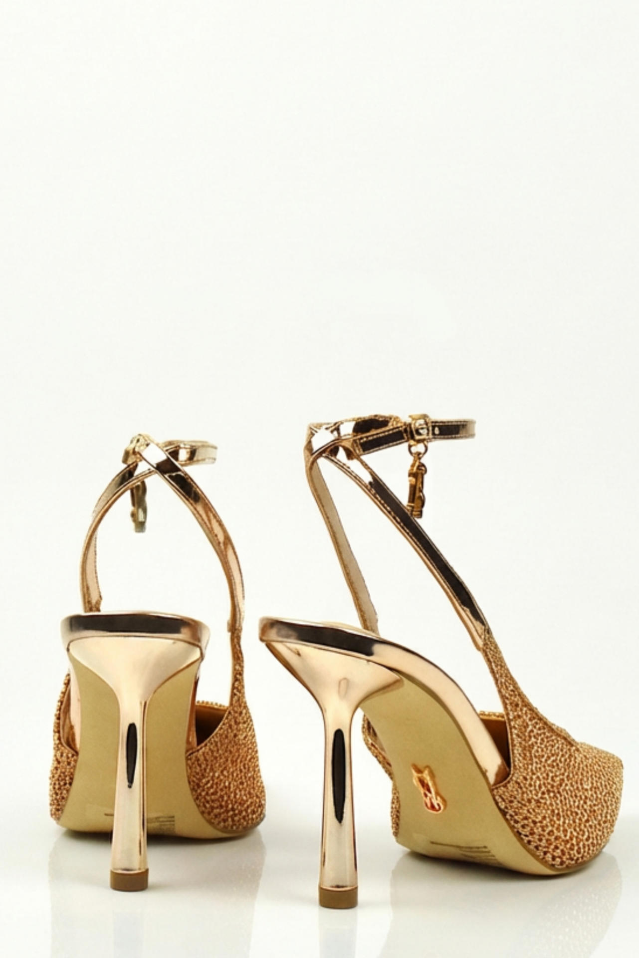 SCARPA IN RETINA E SIMIL PELLE LUCIDA CON CINTURINO. TACCO 90, FONDO GOMMA.
