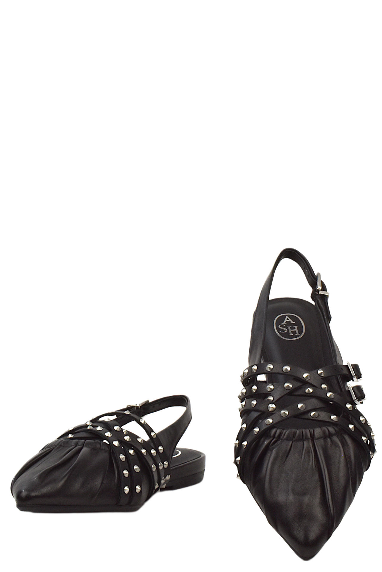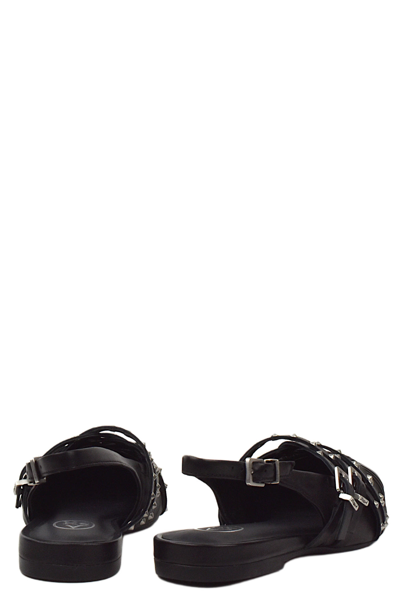 CHANEL IN MORBIDA PELLE CON APPLICAZIONE DI BORCHIETTE E FIBBIETTE REGOLABILI. TACCO 15, MORBIDO SOTTOPIEDE IN PELLE, FONDO GOMMA.