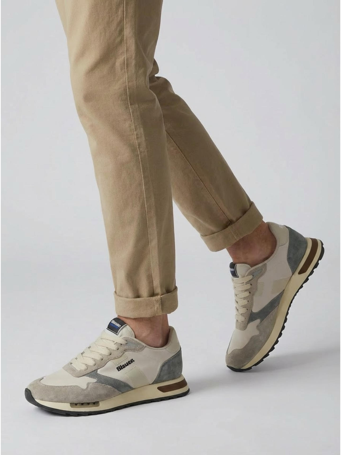 SNEAKER STRINGATA IN CAMOSCIO E TESSUTO TECNICO. PLANTARE INTERNO ESTRAIBILE. TACCO 30, FONDO GOMMA.