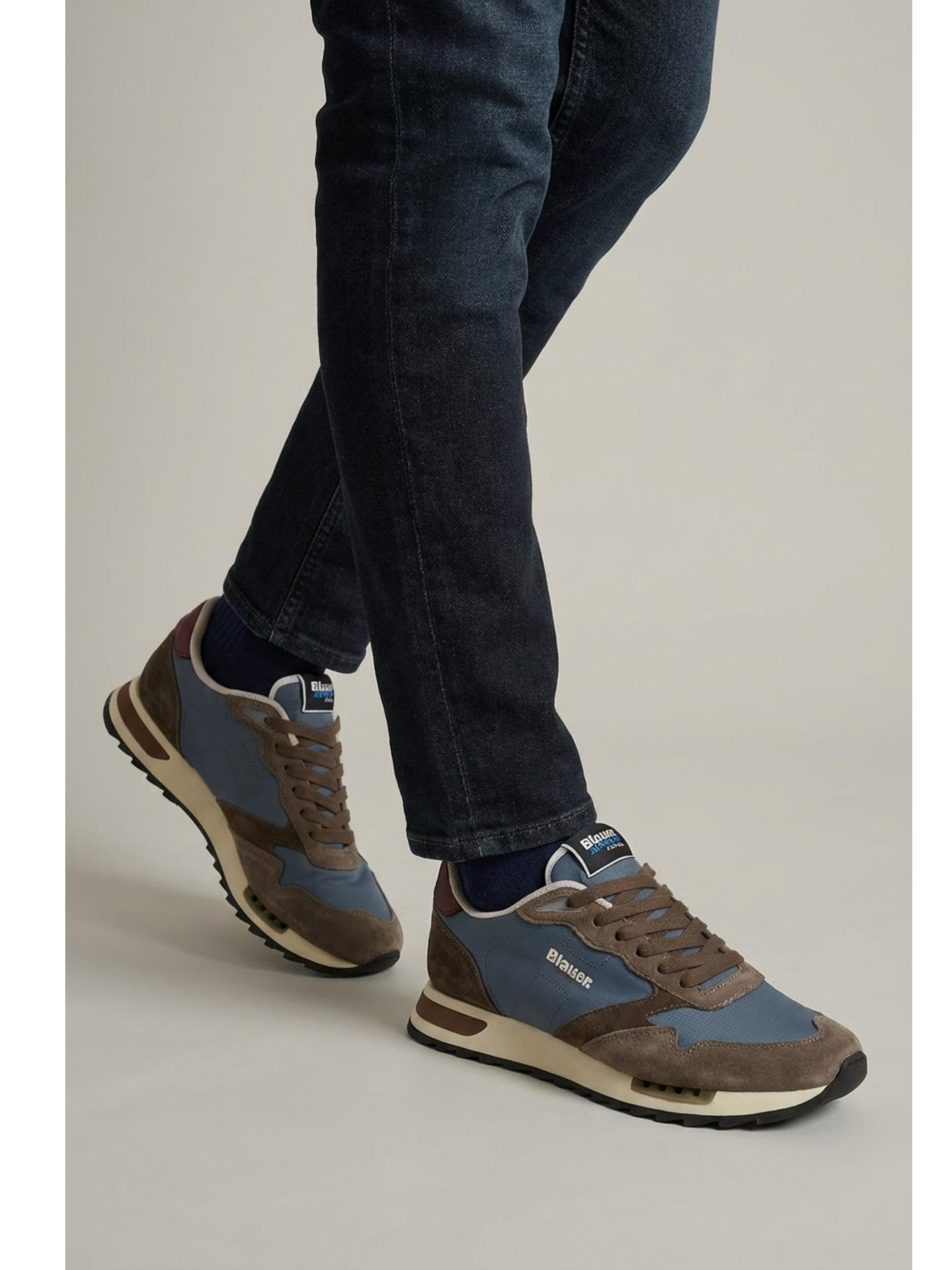 SNEAKER STRINGATA IN CAMOSCIO E TESSUTO TECNICO. PLANTARE INTERNO ESTRAIBILE. TACCO 30, FONDO GOMMA.