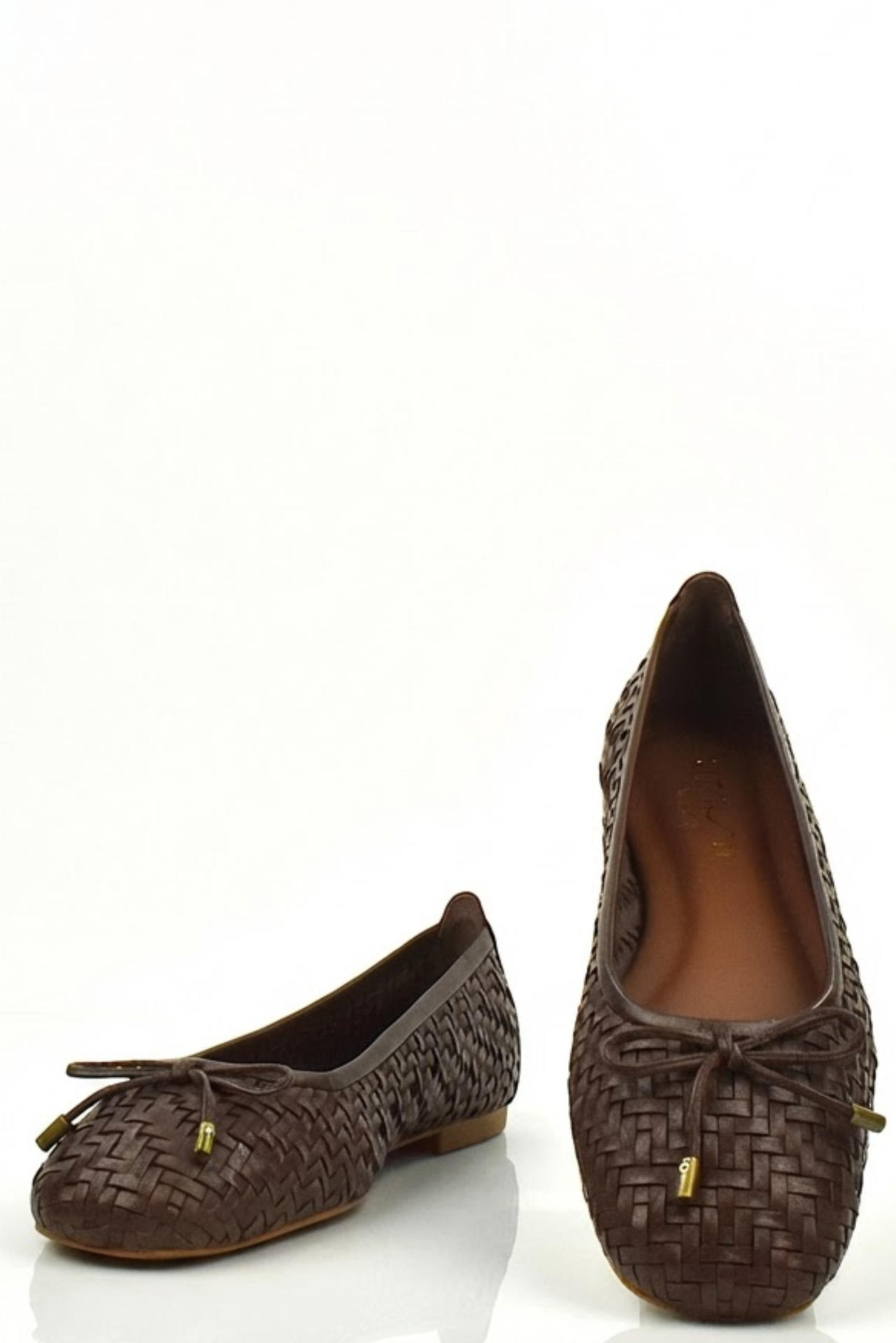 SCARPA IN PELLE INTRECCIATA. TACCO 10, FONDO GOMMA.