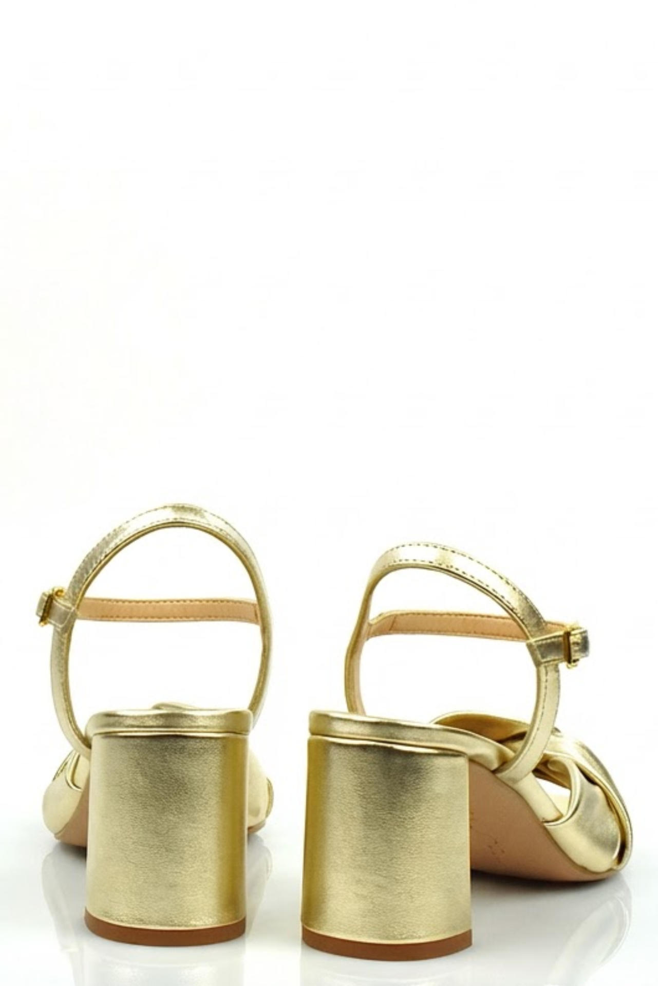 SANDALO IN MORBIDA PELLE LAMINATA CON CINTURINO ALLA CAVIGLIA. TACCO 65, FONDO GOMMA.