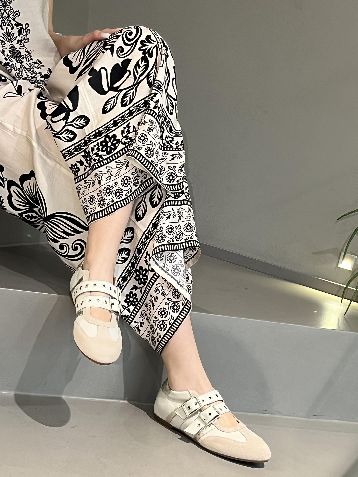 SCARPA IN CAMOSCIO E PELLE CON FIBBIETTE REGOLABILI. TACCO 10, FONDO GOMMA. MADE IN ITALY
