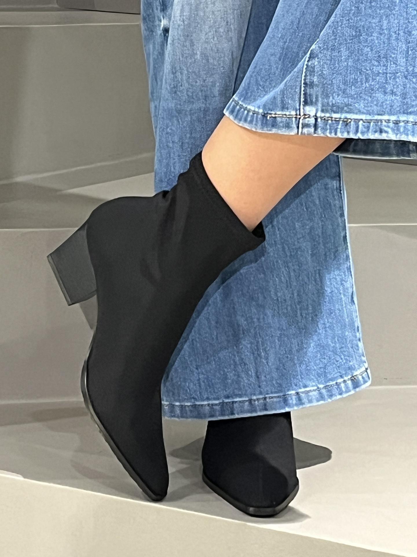 STIVALETTO IN TESSUTO ELASTICIZZATO E RINFORZATO SU PUNTA E TALLONE. MATERIALI INTERNI TRASPIRANTI. TACCO 60, FONDO GOMMA. MADE IN SPAIN