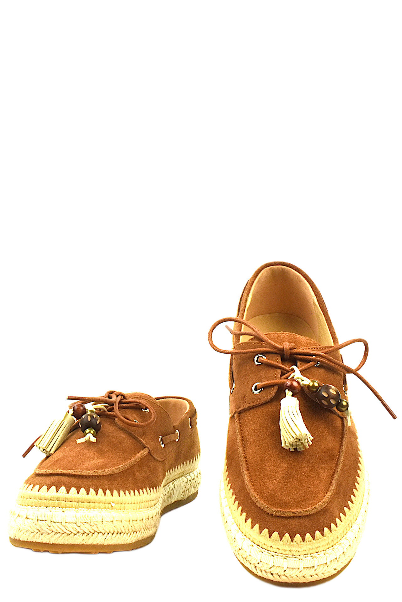 SCARPA IN CAMOSCIO CON LACCIO E NAPPINE DESIGN SFILABILI. MORBIDO SOTTOPIEDE INTERNO. INSERTO IN TESSUTO E CORDA INTRECCIATI. TACCO 25, FONDO GOMMA.