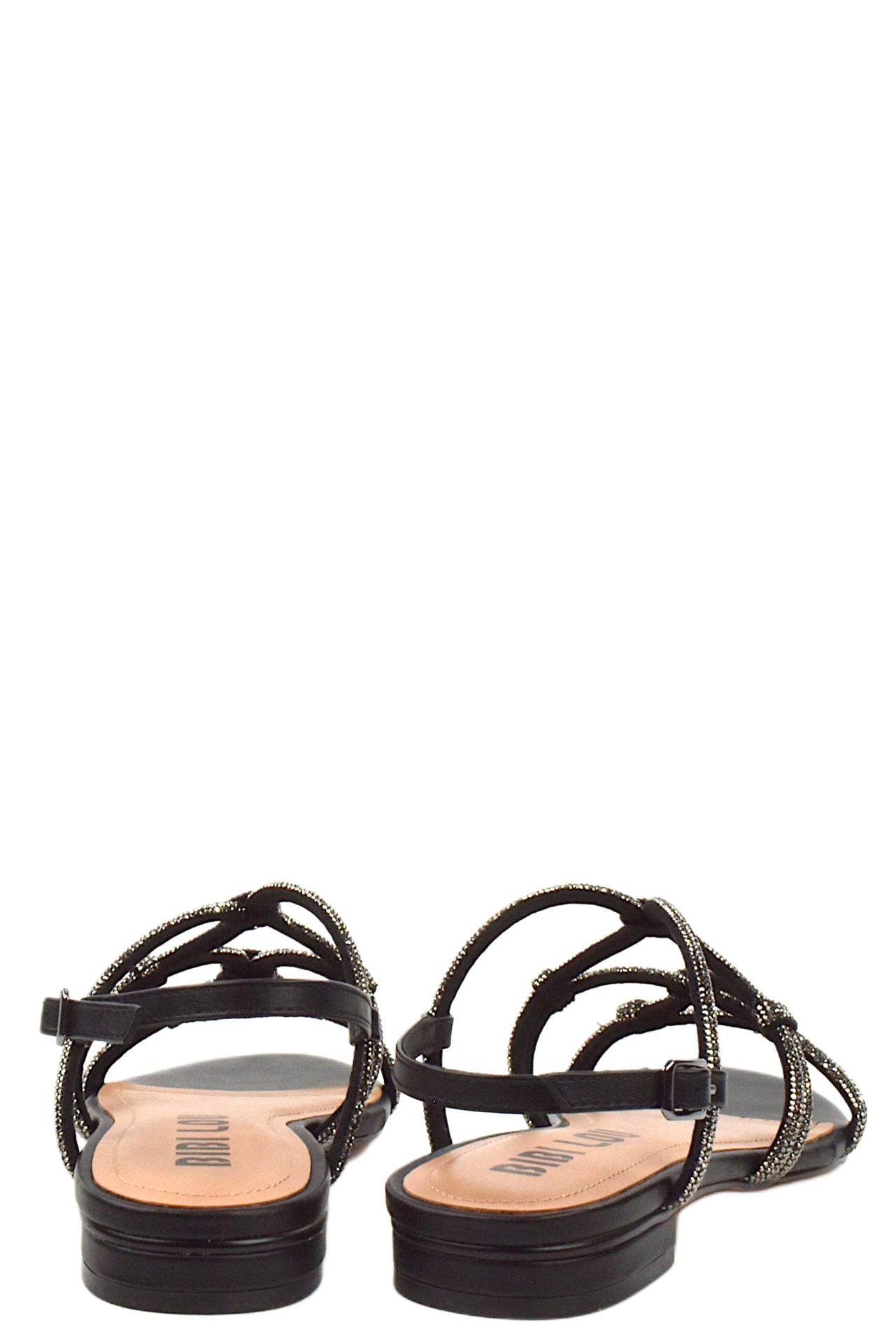 SANDALO IN PELLE E SIMIL PELLE CON APPLICAZIONE DI STRASS E CINTURINO REGOLABILE. TACCO 20, FONDO GOMMA.