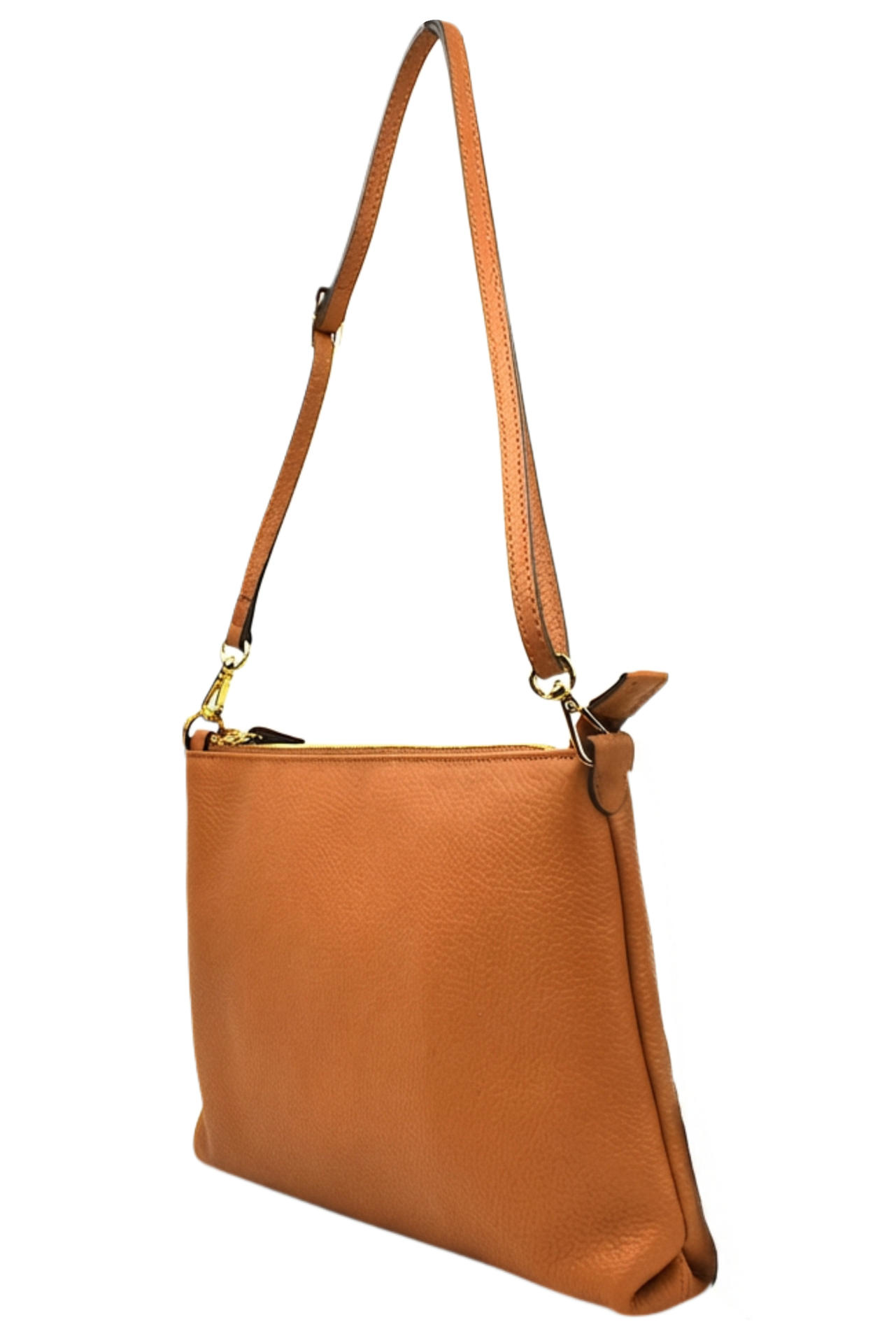 BORSA "JANA" IN PELLE CON ZIP DI CHIUSURA. INTERNO FODERATO E CON TASCHE. TRACOLLA IN PELLE IN TINTA REGOLABILE E MANICOTTO IN PELLE. MISURE 30X19. MADE IN ITALY