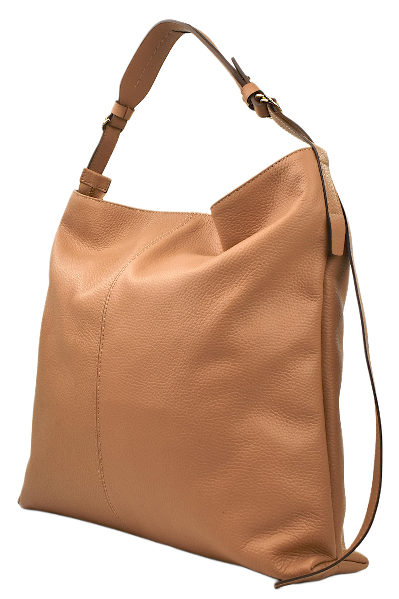 BORSA IN PELLE CON ZIP DI CHIUSURA. INTERNO FODERATO E CON TASCHE. TRACOLLA A SPALLA O ALLUNGABILE MEDIANTE ANELLI DI METALLO AI LATI. MISURE 39X35X8. MADE IN ITALY