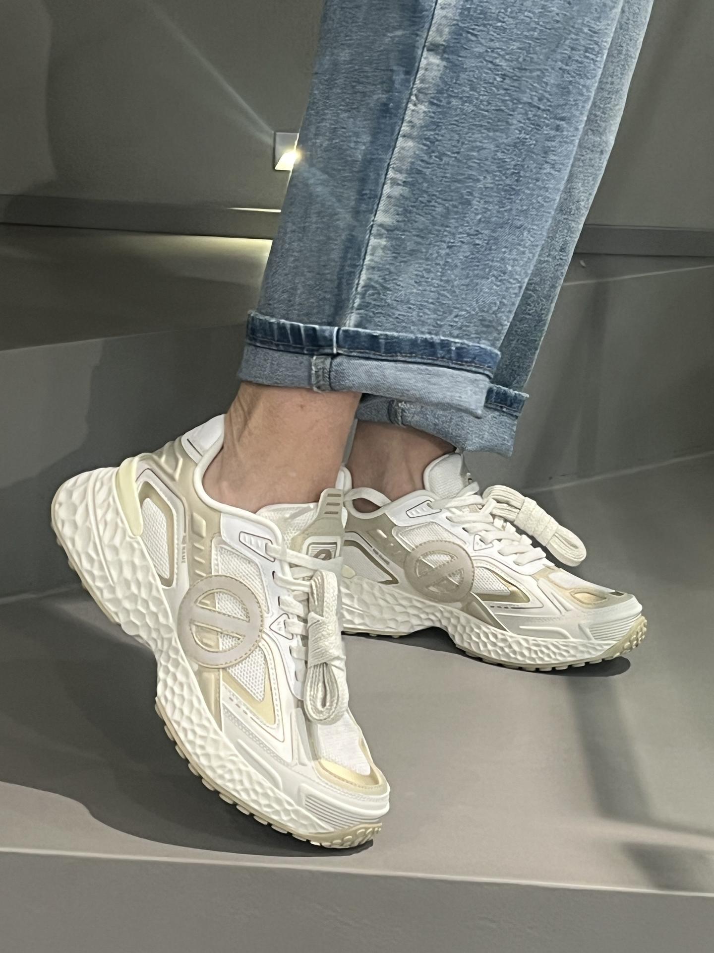 SNEAKER STRINGATA IN SIMIL PELLE E TESSUTO TECNICO. PLANTARE INTERNO. TACCO 45 + STABILIZZATORE, FONDO GOMMA.