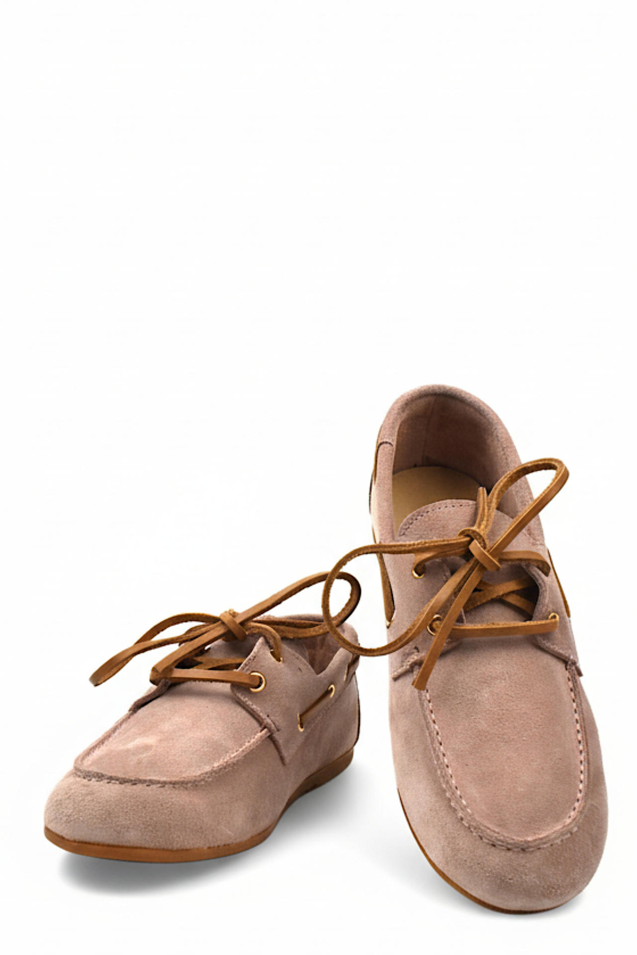 SCARPA IN CAMOSCIO CON LACCIO IN PELLE. PLANTARE INTERNO IN LATTICE CON SOTTOPIEDE IN PELLE ESTRAIBILE. TACCO 10, FONDO GOMMA.