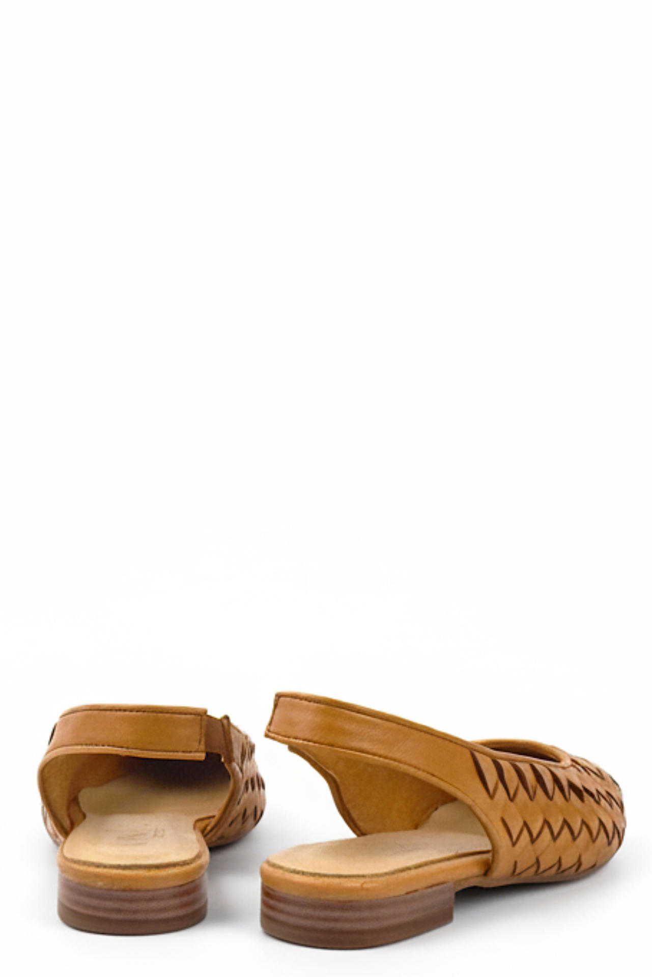 SCARPA IN PELLE INTRECCIATA CON INSERTO ELASTICO SU LATO INTERNO POSTERIORE. TACCO 15, FONDO GOMMA.