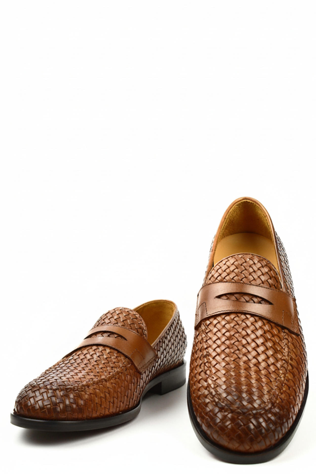 SCARPA IN PELLE INTRECCIATA. TACCO 25, FONDO CUOIO E GOMMA. MADE IN ITALY