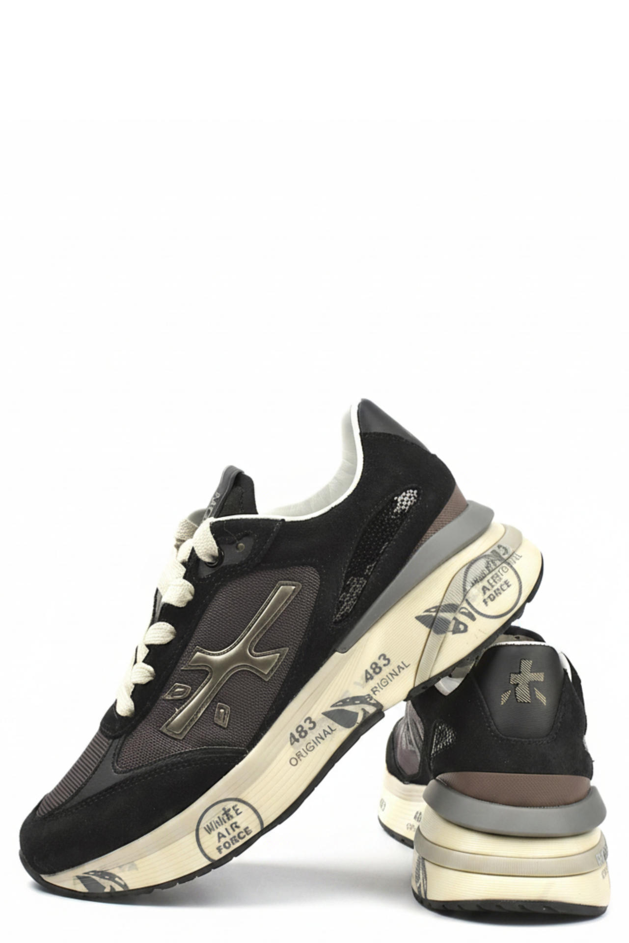 SNEAKER STRINGATA IN CAMOSCIO, PELLE E TESSUTO TECNICO. INSERTO IN PAILLETTES SUI LATI POSTERIORI. PLANTARE INTERNO ESTRAIBILE. TACCO (+STABILIZZATORE) 45, FONDO GOMMA LIGHT.