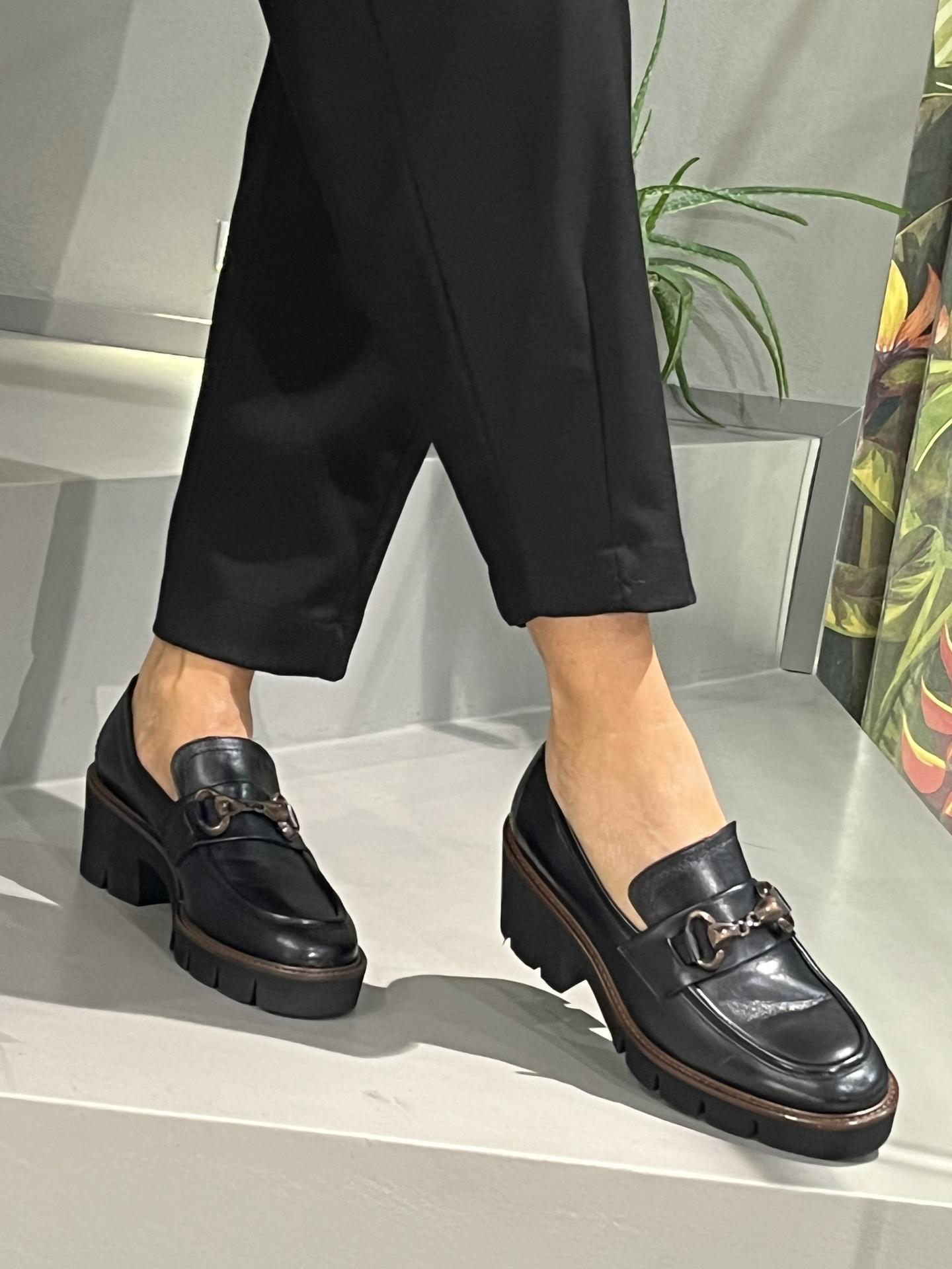 MOCASSINO IN PELLE CON ACCESSORIO FRONTALE. TACCO 60, PLARTFORM 20, FONDO GOMMA LIGHT. MADE IN ITALY