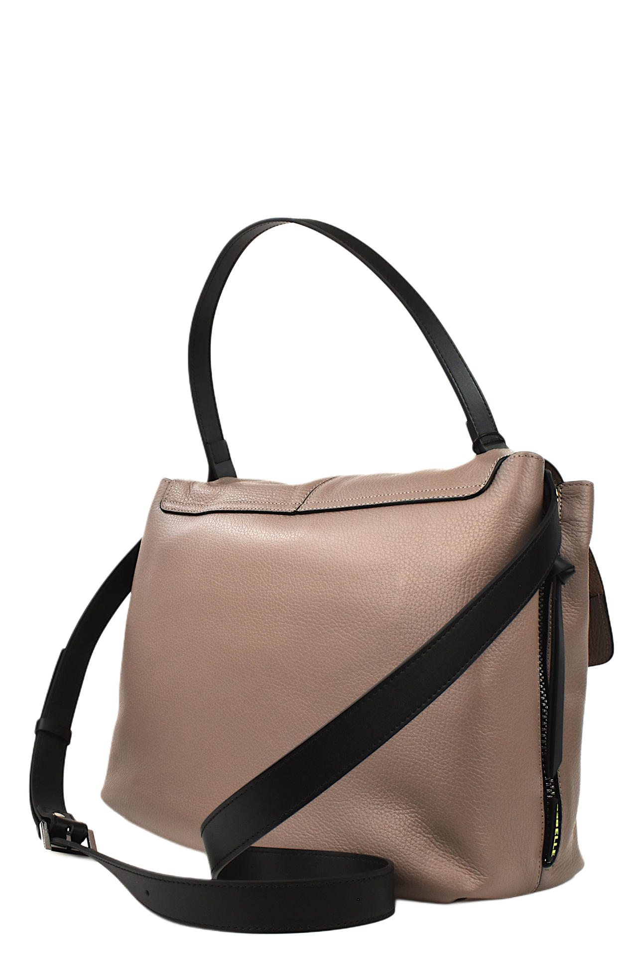 BORSA IN PELLE CON PATTA E BOTTONE MAGNETICO DI CHIUSURA. INTERNO FODERATO CON TASCHE E BIPARTITO. TRACOLLA IN PELLE CON MOSCHETTONI AGLI ESTREMI INCLUSA. MISURE 33X24X13