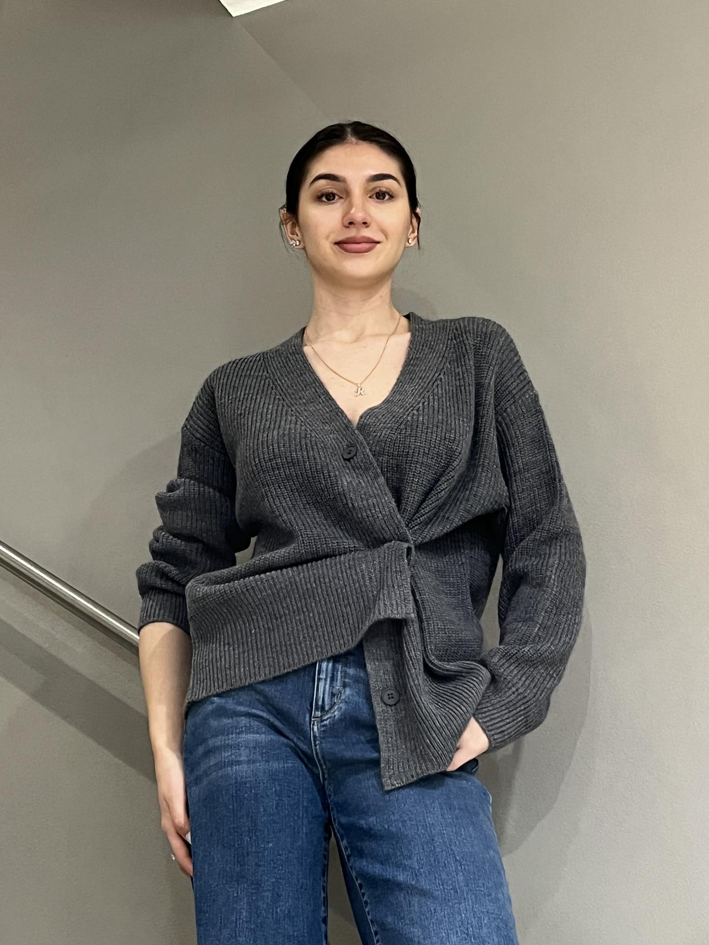 CARDIGAN PUNTO PANNOCCHIA CON BOTTONE LATERALE